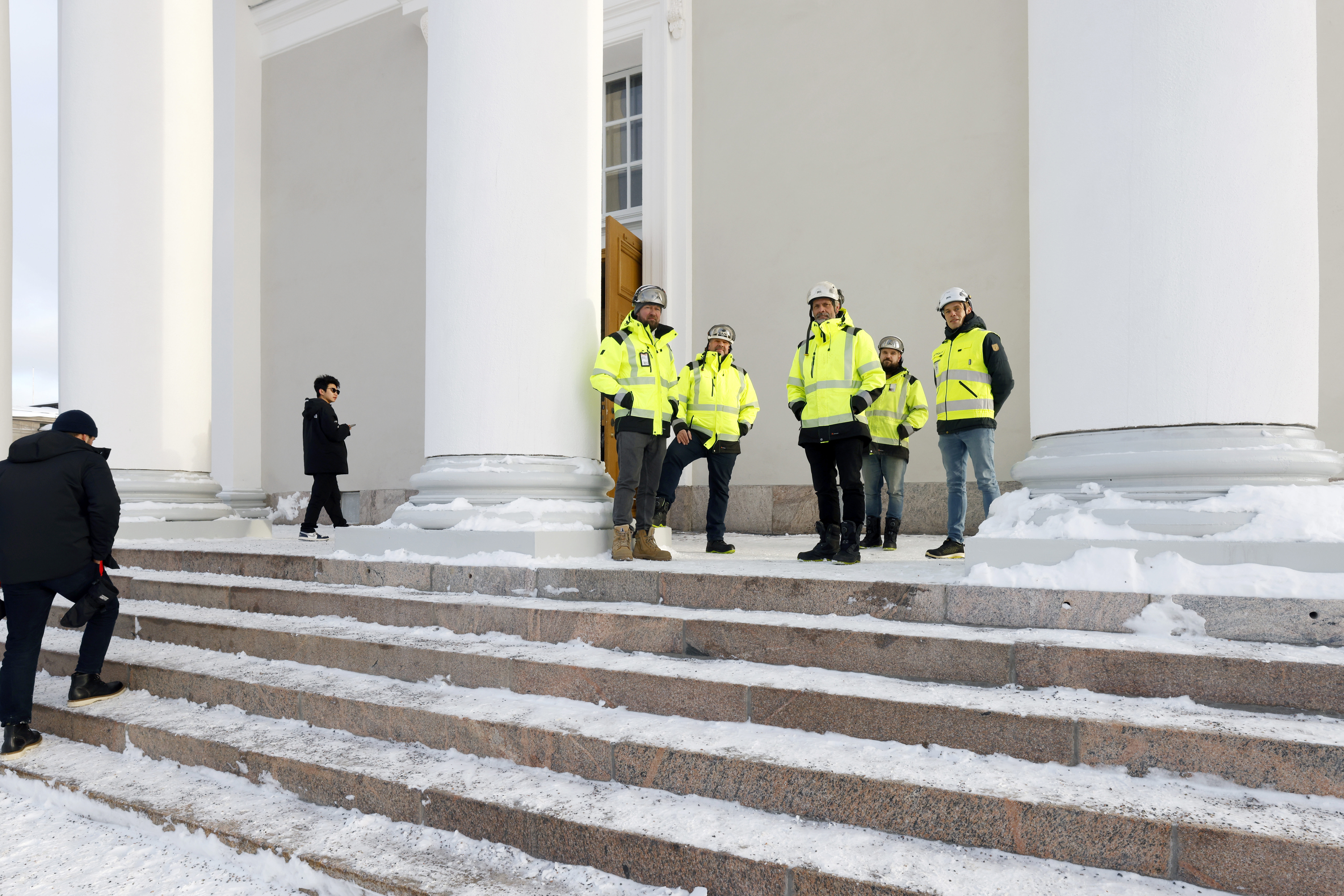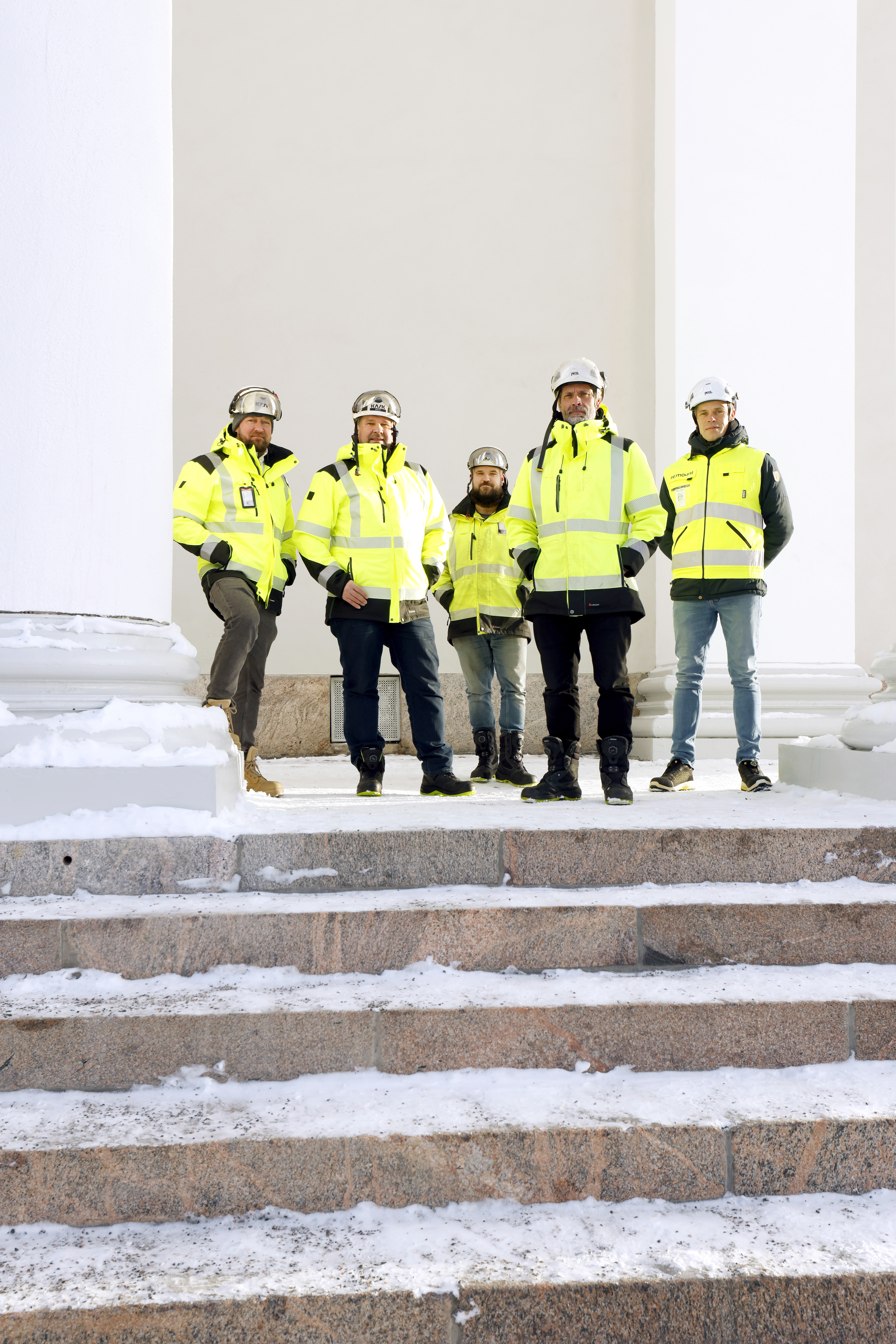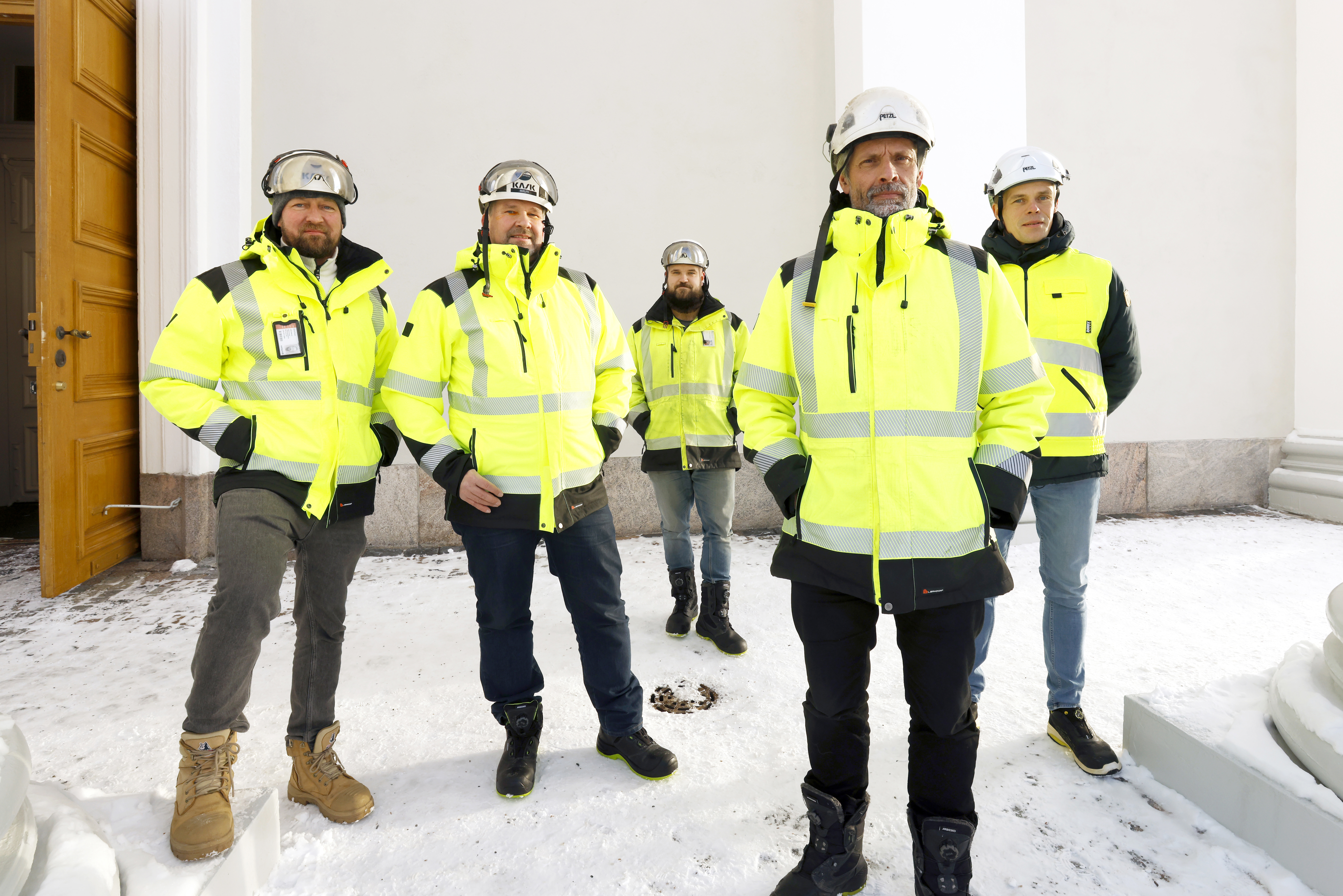 – Jokainen ammattilaisryhmä tekee oman osuutensa ajallaan, ja työnjohdon tehtävänä on luoda siihen oikeat olosuhteet. Laskennan ja suunnittelun jälkeen tontille tulevat vuorollaan telineiden pystyttäjät, purkuporukka, rapparit, ikkuna-, pelti- ja sähkömiehet, koristetyöntekijät sekä uudelleen rapparit ja maalarit. Sitten telineet puretaan, jäljet siivotaan ja projekti luovutetaan, Kallio ja Piitulainen kertovat.