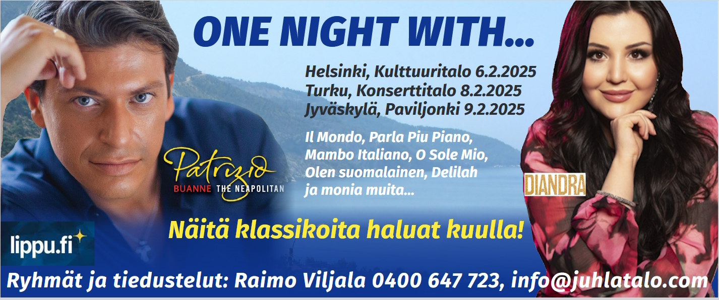 Italialainen baritoni Patrizio Buannen ja Special guest Diandran Suomen helmikuussa 2025 lopuunmyydyt konsertit Helsingissä, Turussa ja Jyväskylässä olivat täysosuma. Murheet ja yksinäisyyden tunne ainakin poistuivat noina päivinä. Konserttien jälkeen odotetaan jo innolla molempien kesäesiintymisiä Suomessa.