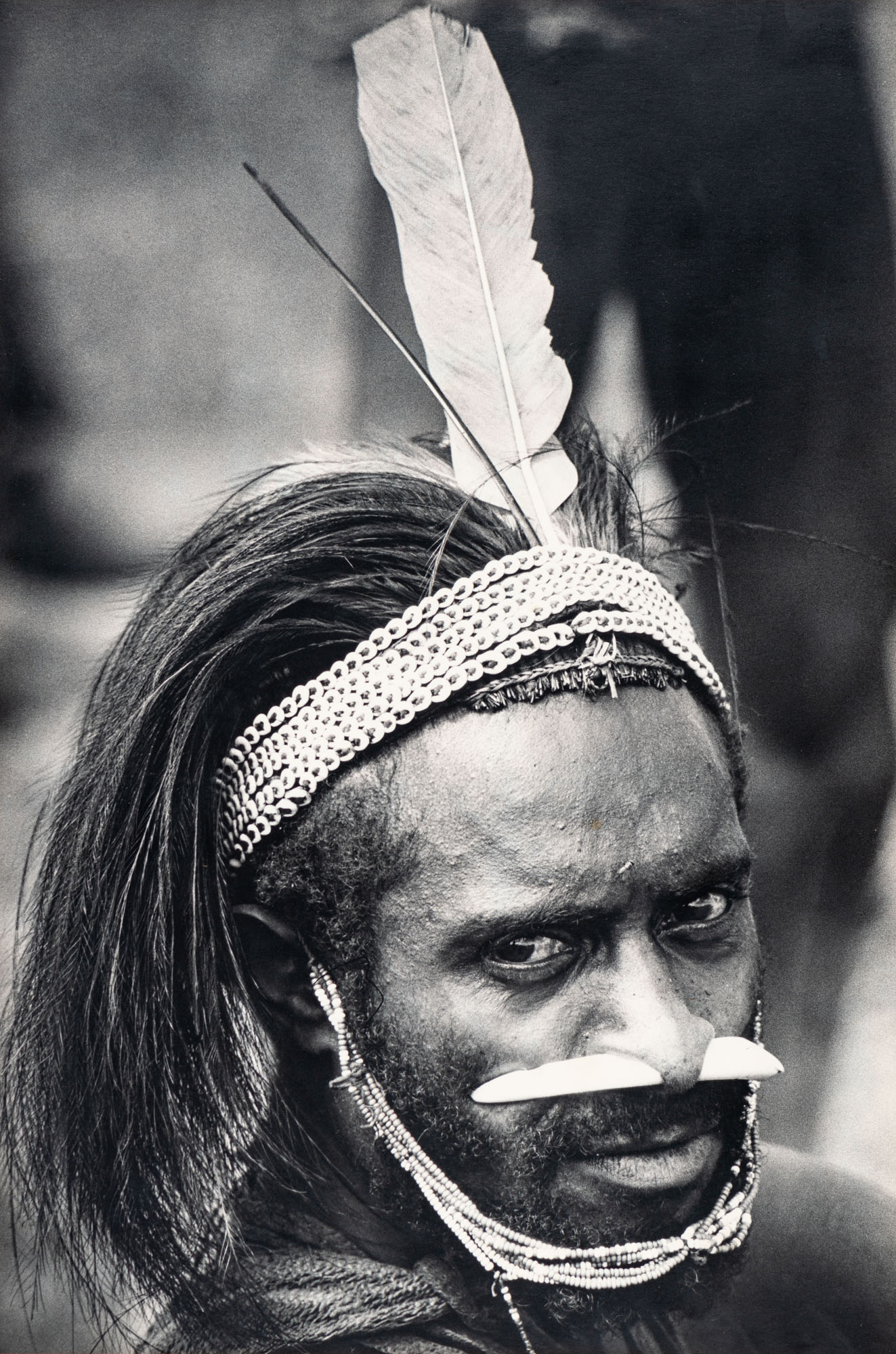 Mies, jolla on koristeellinen pääkoriste ja kasvomaalauksia.