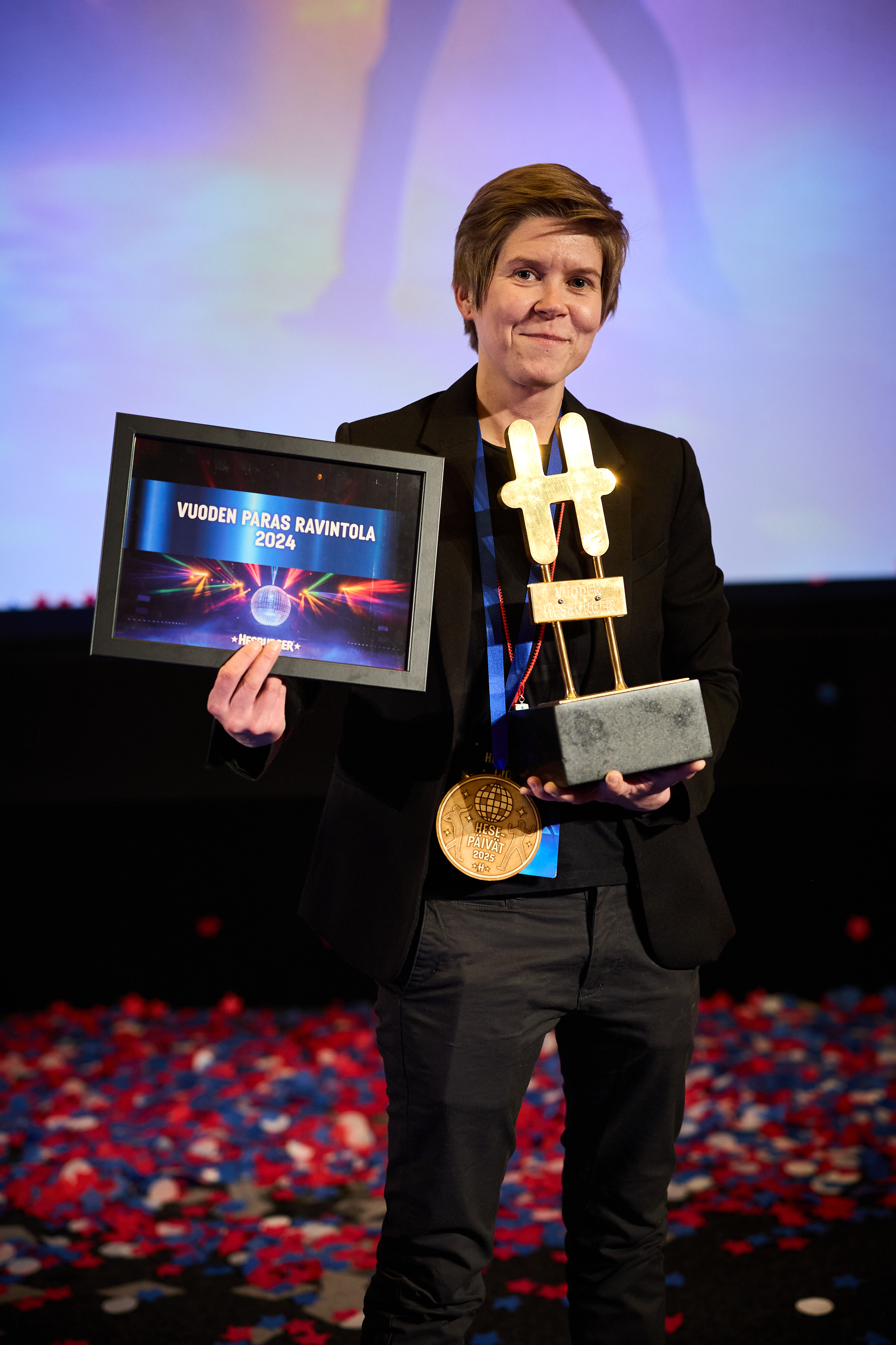 ”Meidän ravintolassamme on tekemisen meininki ja positiivinen asenne. Tämä näkyy myös työtyytyväisyystuloksissa, jotka ovat todella hyviä, ja henkilökunnan vaihtuvuus on pientä. Kaikki työntekijät ja esihenkilöt puhaltavat yhteen hiileen. Haluamme palvella asiakkaitamme mahdollisimman hyvin, on kyse sitten suosituista kotiinkuljetuspalveluista tai ravintolassa tehtävistä tilauksista”, Perämäki kehuu.