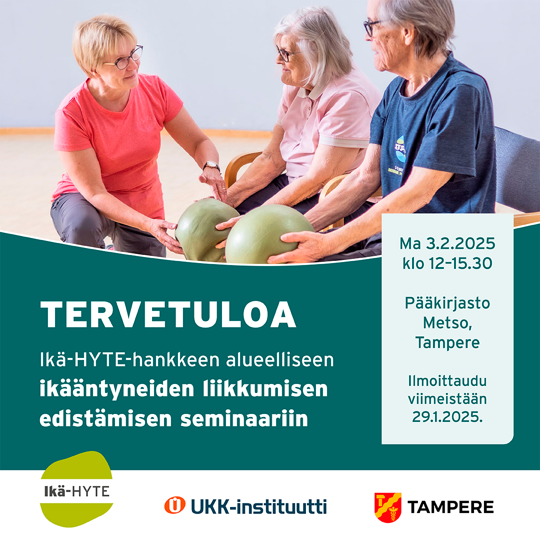 Seminaarin järjestävät yhteistyössä UKK-instituutin Ikä-HYTE-hanke ja Tampereen kaupungin liikuntapalvelut.