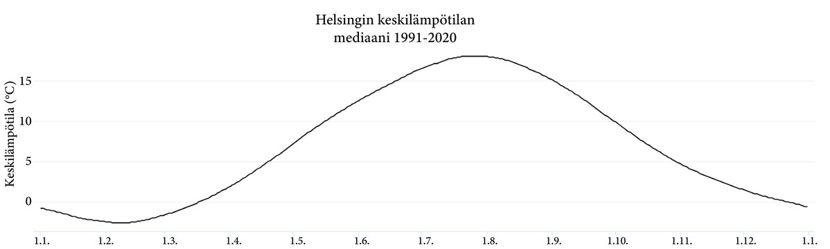 Tilastollisesti nyt eletään vuoden kylmintä aikaa. Lapissa on kylmintä keskimäärin tammikuun viimeisellä viikolla ja etelässä helmikuun ensimmäisellä viikolla.