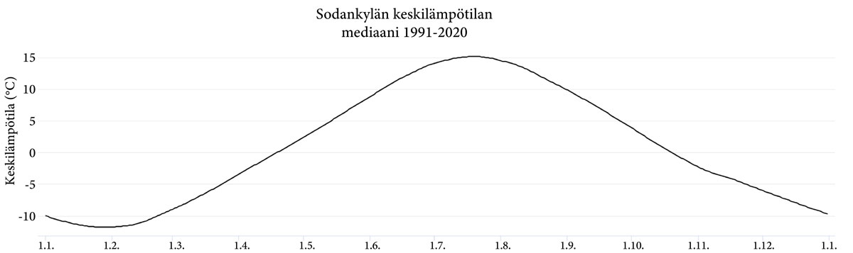 Sodankylässä talven kylmimmät hetket ovat historiassa painottuneet tammi- ja helmikuulle. Maaliskuun puolivälin jälkeen on talven kärkitulos voitu aina lyödä lukkoon, sillä sen jälkeen kireimmät pakkaset hellittävät. Sodankylässä mitattiin –32,4 astetta 15.12.2024, millä päästään toiselle sijalle talvien äärikylmyystilastossa. Vain talvella 2008 on Sodankylässä mitattu muutamia kymmenyksiä korkeampi lukema. Jos nykyiseen lukemaan jäädään, olisi talven kylmin lukema mitattu Sodankylässä tätä aikaisempana ajankohtana vain seitsemän kertaa havaintoaseman 118-vuotisessa historiassa.