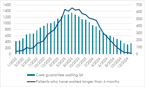 Currently, there are only 13 patients who have waited for their surgery longer than the guaranteed treatment time, which is six months, compared to more than 600 in fall 2023.