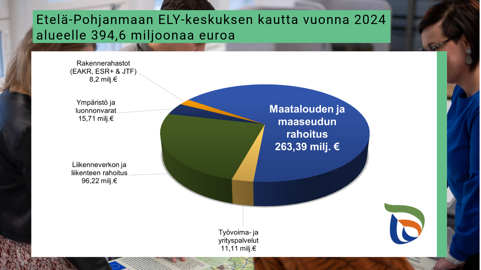 Etelä-Pohjanmaan ELY-keskuksen kautta kanavoitiin noin 394,6 miljoonaa euroa vuonna 2024