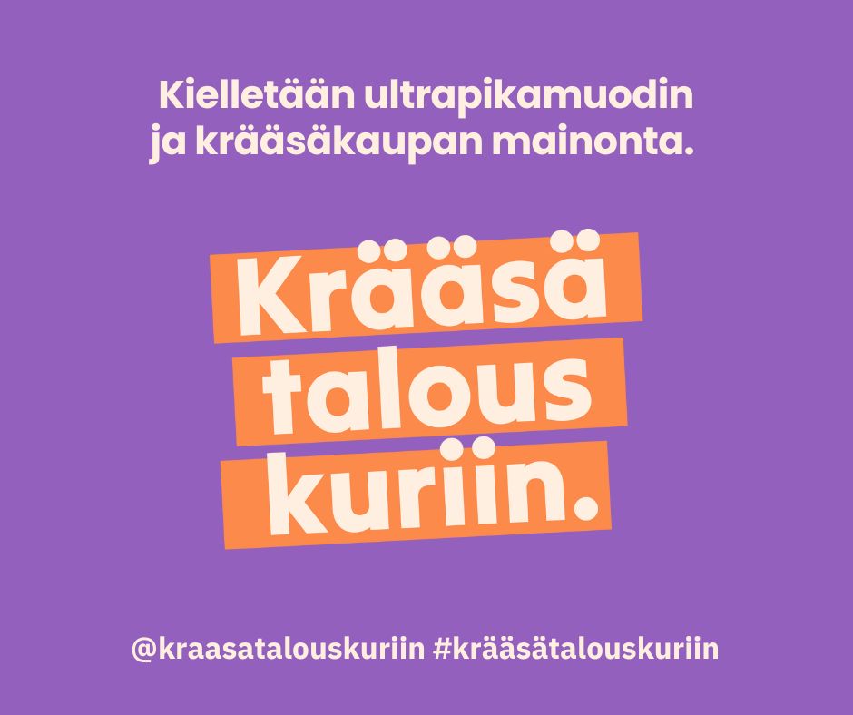 Suomalaiset yritykset, järjestöt ja vaikuttajat sanovat suoraan: krääsätalous on pysäytettävä. Uusi Krääsätalous kuriin -kansalaisaloite vaatii eduskuntaa kieltämään ultrapikamuodin ja krääkaupan mainonnan Suomessa. Tällä hetkellä kiinalaiset verkkokaupat, kuten Temu ja Shein, hyödyntävät sääntelyn puutteita ja vääristävät kilpailua.