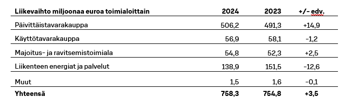 – Olemme viimevuosien aikana kiihtyvällä tahdilla investoineet laajasti palveluihin 15 kunnan alueella niin kivijalassa kuin verkossa. Kehittyvät palvelut ja omistajahyöty vetävät puoleensa. Uusia jäseniä on liittynyt enemmän kuin ennen ja erityisen ilahduttavaa on ollut päivittäistavarakaupan +3 % kasvu sekä majoitus - ja ravitsemistoimialan kehitys vastavirtaan haastavassa toimintaympäristössä liki 5 % kasvulla. Liikenteen energioiden osalta polttonesteiden markkinassa hintakehitys selittää liikevaihdon laskun, mutta litroja liikkui edellisen vuoden tasolla, Junttila jatkaa.