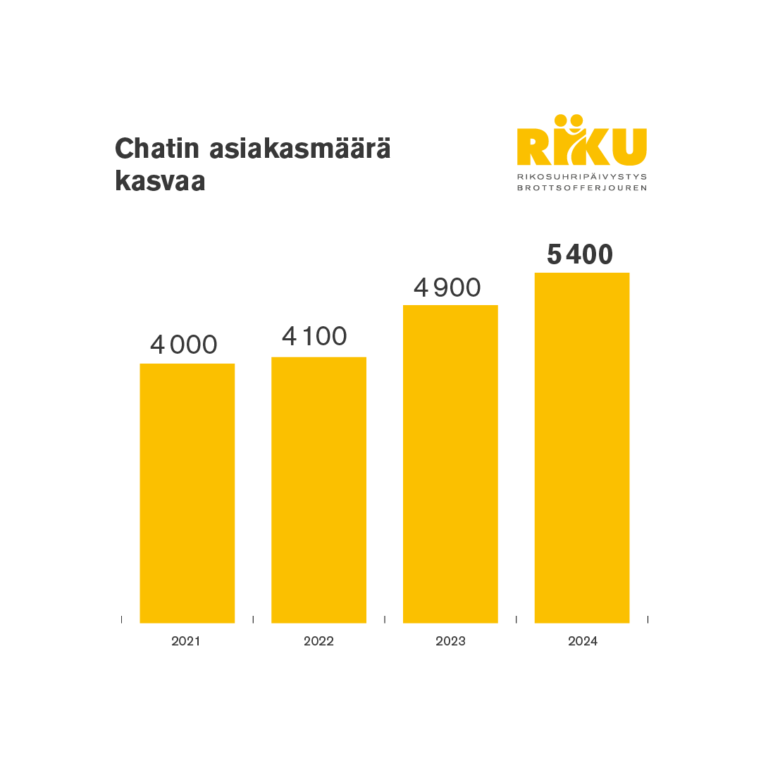 Riku.fi-verkkosivustolla toimivassa RIKUchatissa asiakkaita oli 5 400 eli kymmenen prosenttia enemmän kuin edellisvuonna (4 900). Chatin aukioloaikoja laajennettiin huhtikuun alussa.