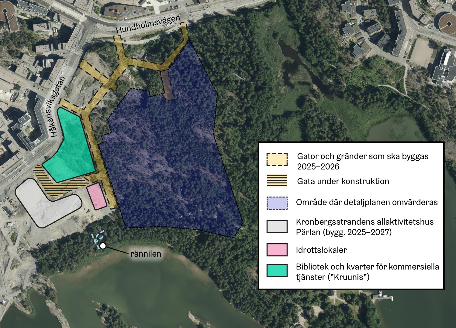 Under byggarbetena som inleds på våren bygger man fem nya gator och kommunalteknik i Kronbergsstranden. Arbetena inleds på vårvintern med röjning och trädfällning, eftersom en del av gatorna sträcker sig till kanten av ett skogsområde.