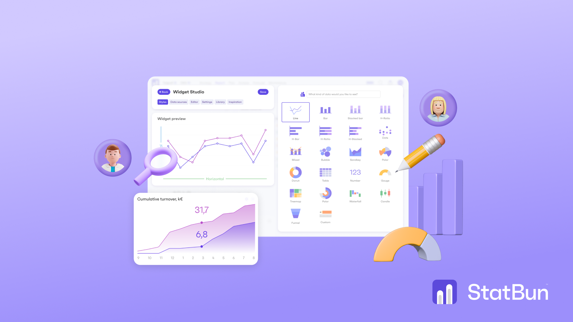 Tilitoimistojen toimintakenttä on murroksessa, jossa asiakkaat odottavat entistä enemmän reaaliaikaista tietoa, analyyseja ja strategista tukea päätöksenteossa. StatBun vastaa tähän tarpeeseen tarjoamalla tilitoimistoille moderneimpia teknologioita ja innovaatioita hyödyntävän vuorovaikutteisen liiketoiminta-alustan. StatBun tarjoaa muun muassa valmiit, muokattavat raportti- ja budjettipohjat, helppokäyttöisen live-editorin ja monipuolisen widget-kirjaston, joiden avulla raportteja ja uudenlaisia näkymiä liiketoimintaan voidaan tuottaa automaattisesti ja mukauttaa tekoälyavusteisesti asiakkaiden yksilöllisten tarpeiden mukaan. StatBunin modernit BI-työkalut tekevät johtamisesta älykkäämpää ja suorituskykyisempää kuin koskaan aiemmin.