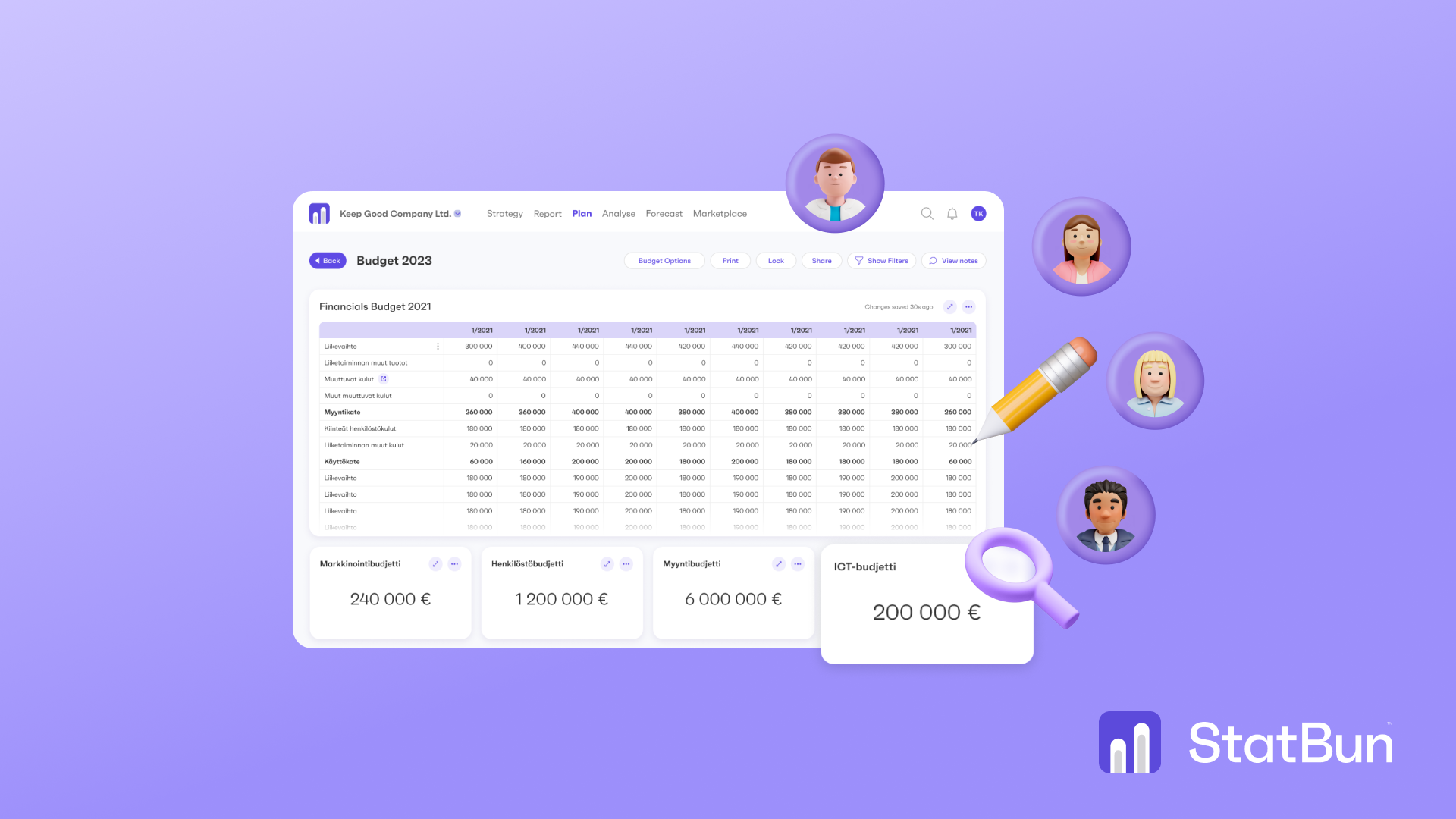 – Tilitoimistot eivät enää vain reagoi, tai vaikeroi resurssihaasteiden kanssa, vaan ne voivat ennakoida ja auttaa asiakkaitaan tekemään parempia liiketoimintapäätöksiä. StatBun on suunniteltu mahdollistamaan tämä muutos. Tilitoimistoissa oleva talousjohtamisen ammattitaidon ja palvelun potentiaali saadaan StatBunin avulla valjastettua kokonaisuudessaan käyttöön yritysten menestyksen tueksi. Tämän takia olemme olemassa – jotta maailmassa olisi enemmän paremmin menestyviä yrityksiä, Kemppinen summaa.