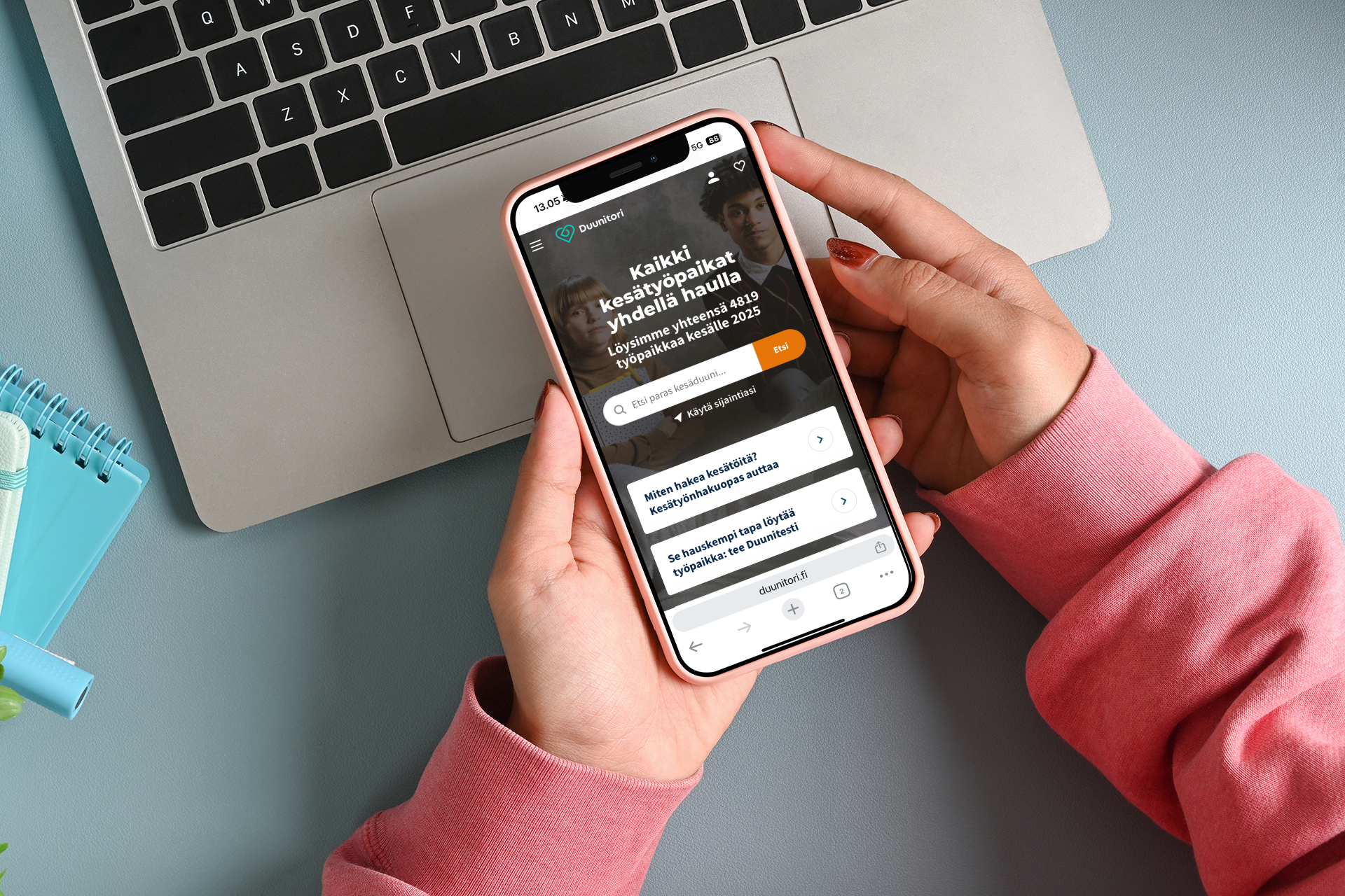 Tällä hetkellä Duunitorin kesätyösivulta löytyy yli 4 800 kesätyöilmoitusta. Työpaikkoja on todellisuudessa enemmän, sillä monet työnantajat hakevat yhdellä ilmoituksella kymmeniä tai jopa satoja kesätyöntekijöitä.