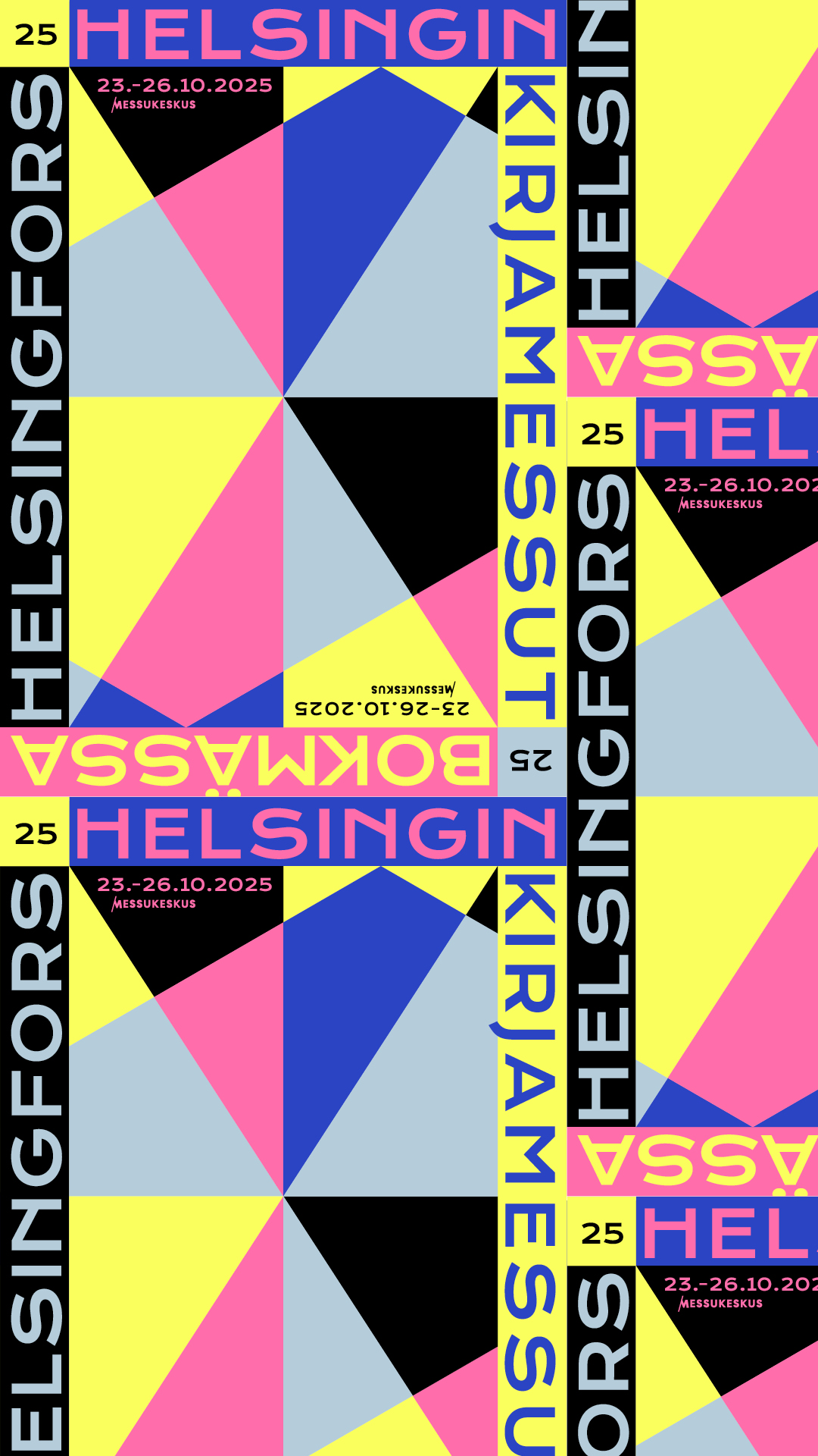 Vuoden 2025 teema näkyy myös Helsingin Kirjamessujen uudessa visuaalisessa ilmeessä, jonka on tänäkin vuonna suunnitellut Tero Ahonen.