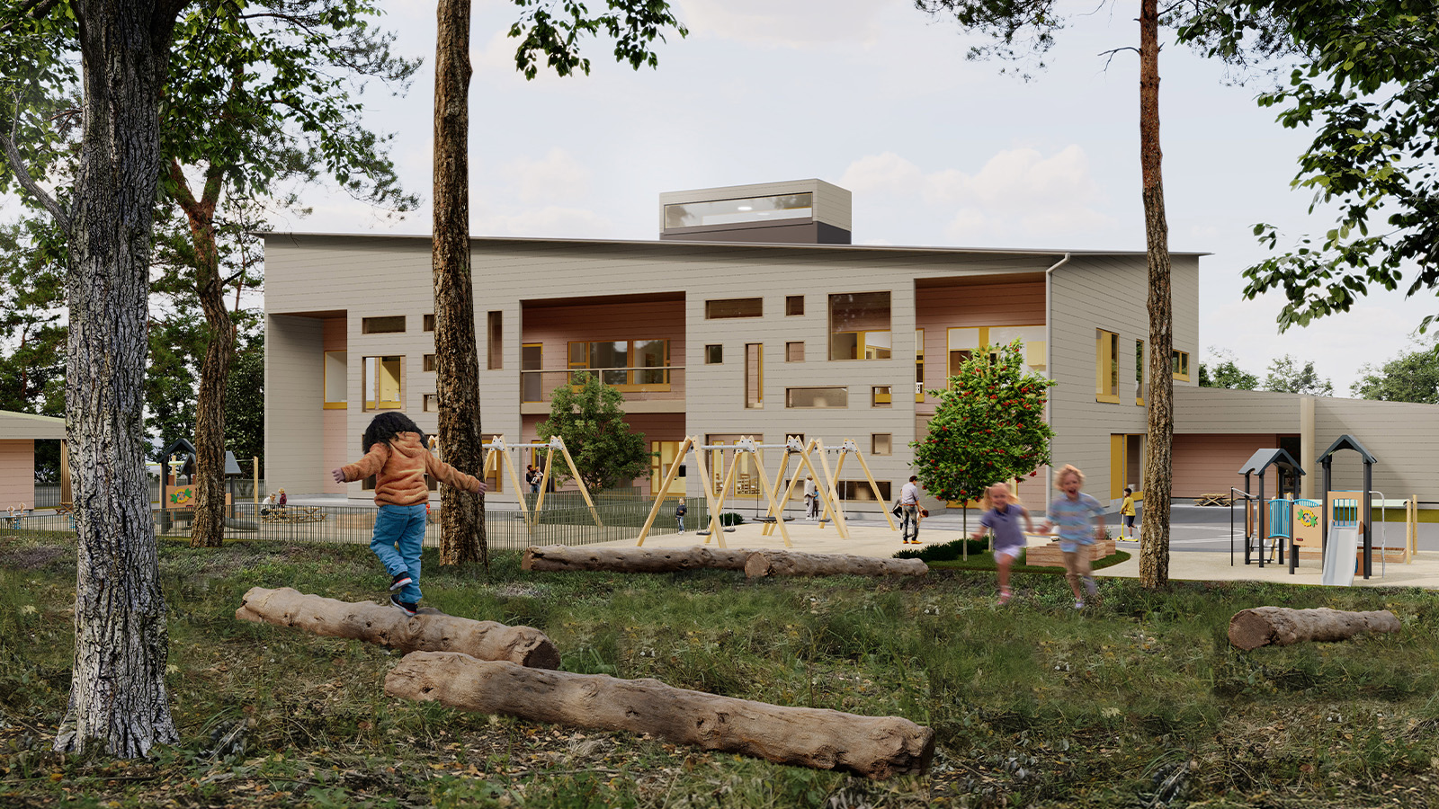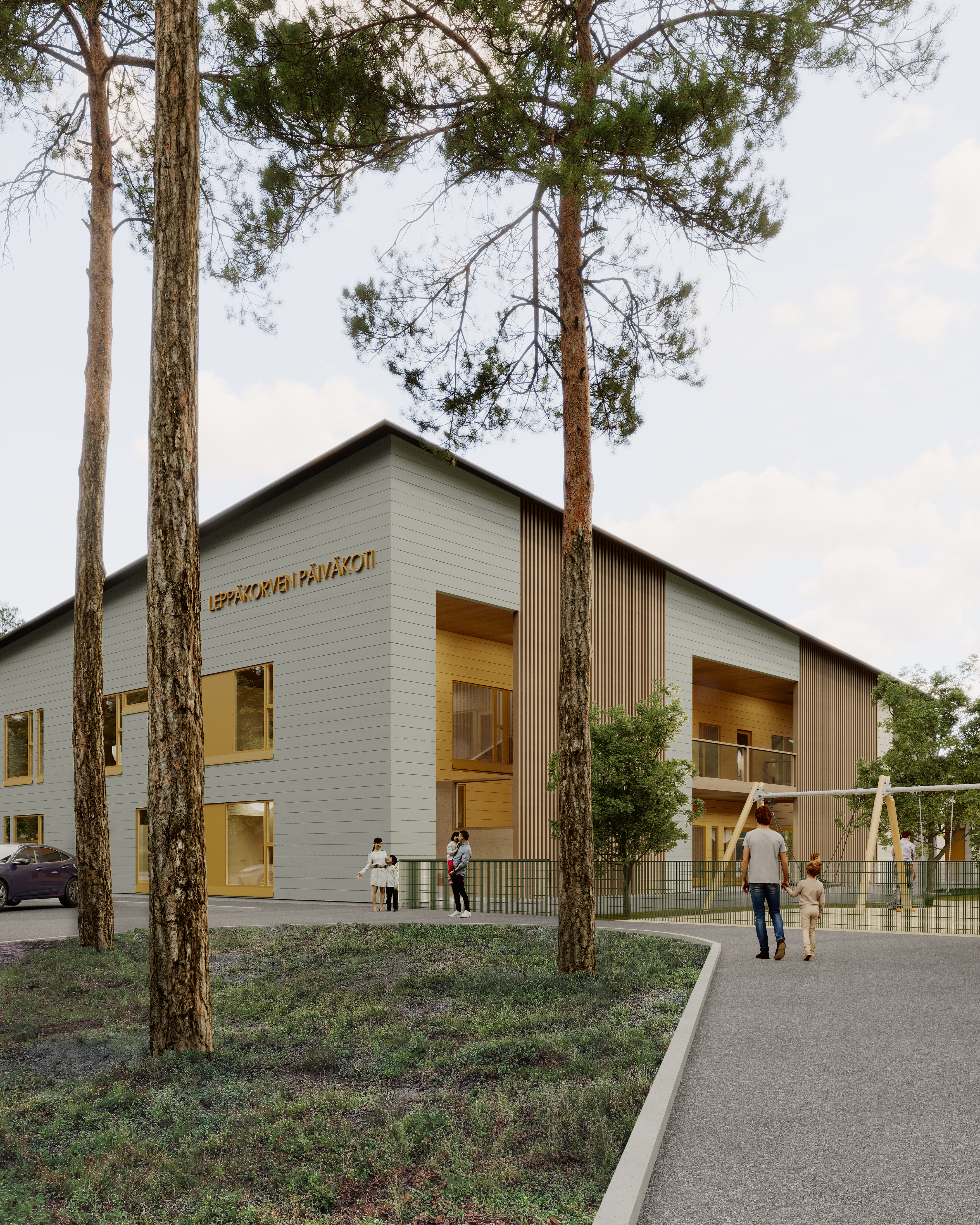 Hoivarakentajat - Leppäkorven päiväkoti Vantaa - havainnekuva julkisivusta Hoivarakentajat
