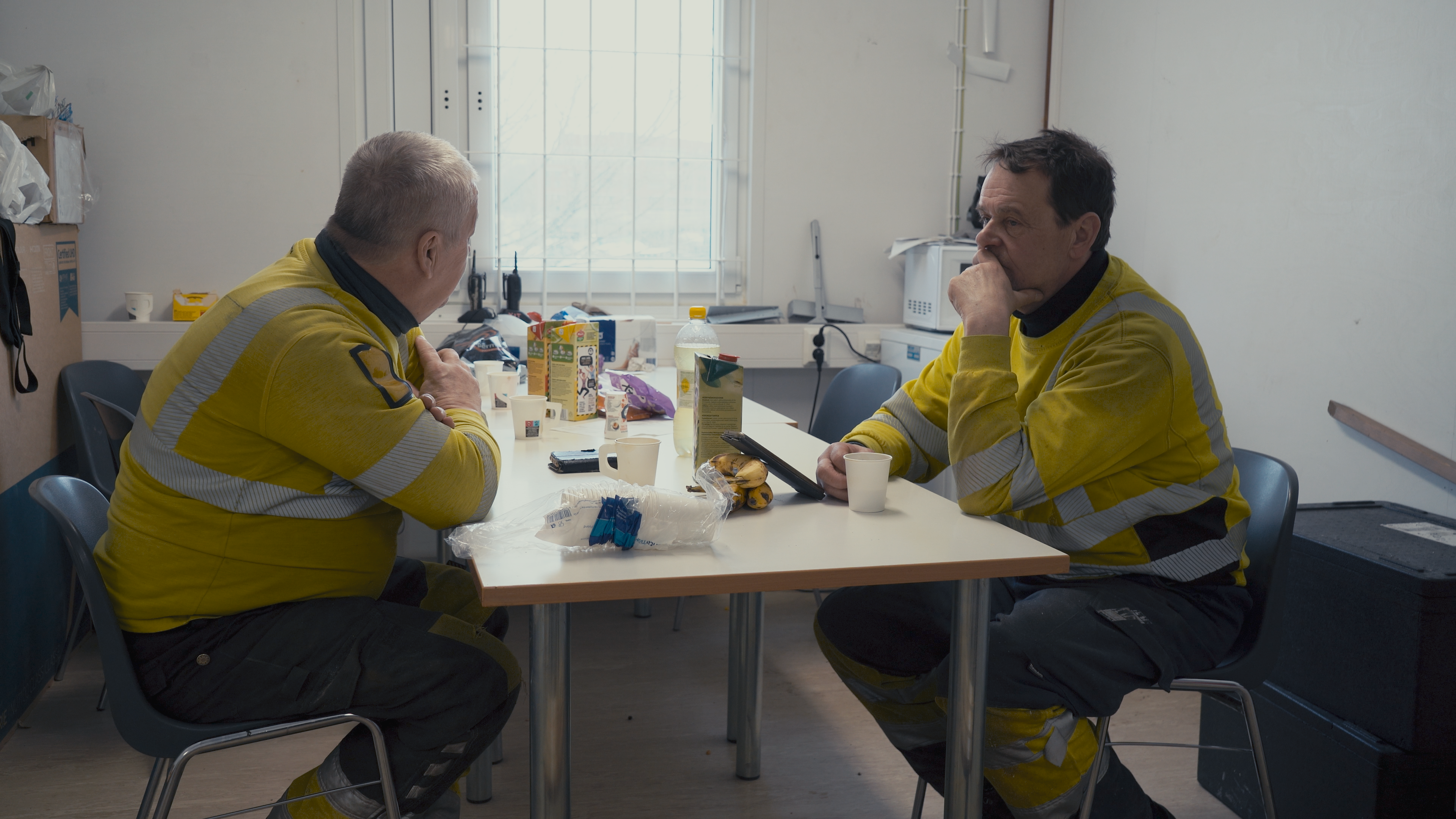 The documentary short film Room for a Break (2025, duration 27 min) depicts breaks in a think tank, construction site container, museum, and midwife break room, among others. In the video, a break expands into a question of space and time: who can take a break in today’s work life, in what kind of settings are breaks taken, and who decides on breaks?