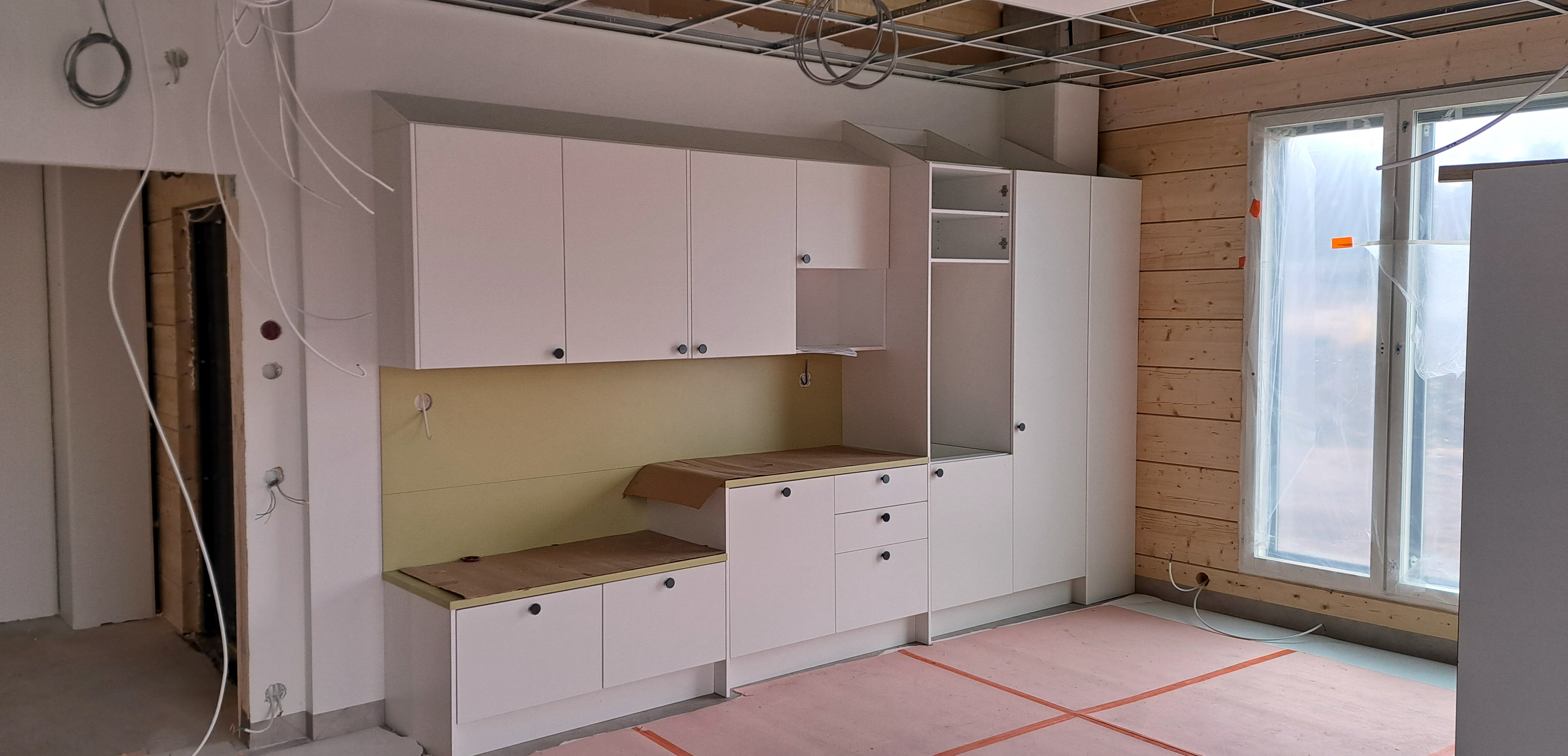Tällä hetkellä työmaalla tehdään sisätöitä kuten lattiapintoja, kalusteasennuksia ja alakattotöitä. Työmaalla työskentelee päivittäin noin 20 henkilöä.