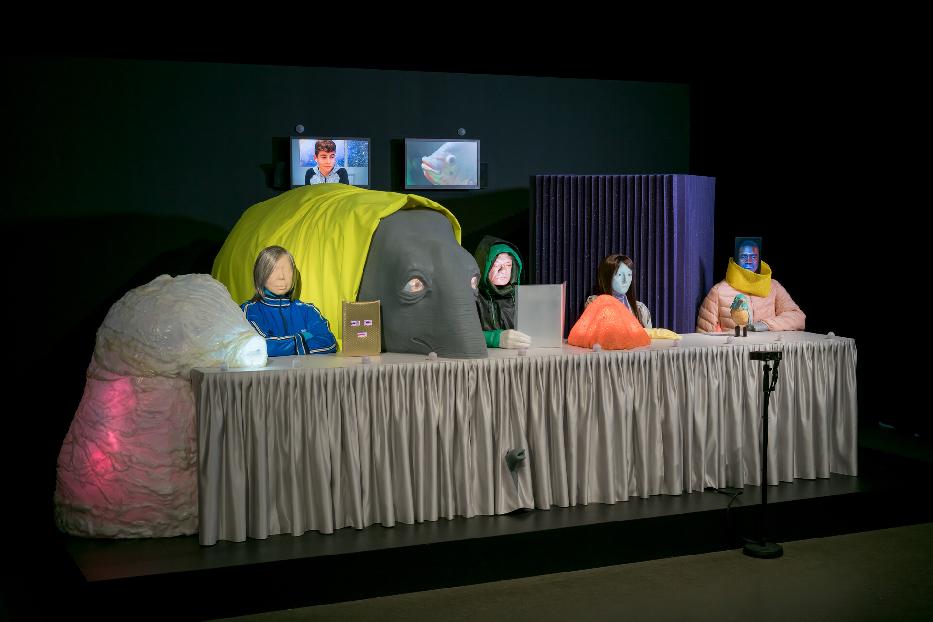 Utställningen breder ut sig som en slingrande labyrint i Amos Rex underjordiska utrymmen. Skalan och avstånden varierar från verk till verk, och olika sinnen aktiveras då perspektivet förändras. Kombinationen av skulptur, rörlig bild, ljud och elektronik erbjuder en dynamisk upplevelse, där varje installation tar oss på en resa mot mångsidiga förståelser och insikter.