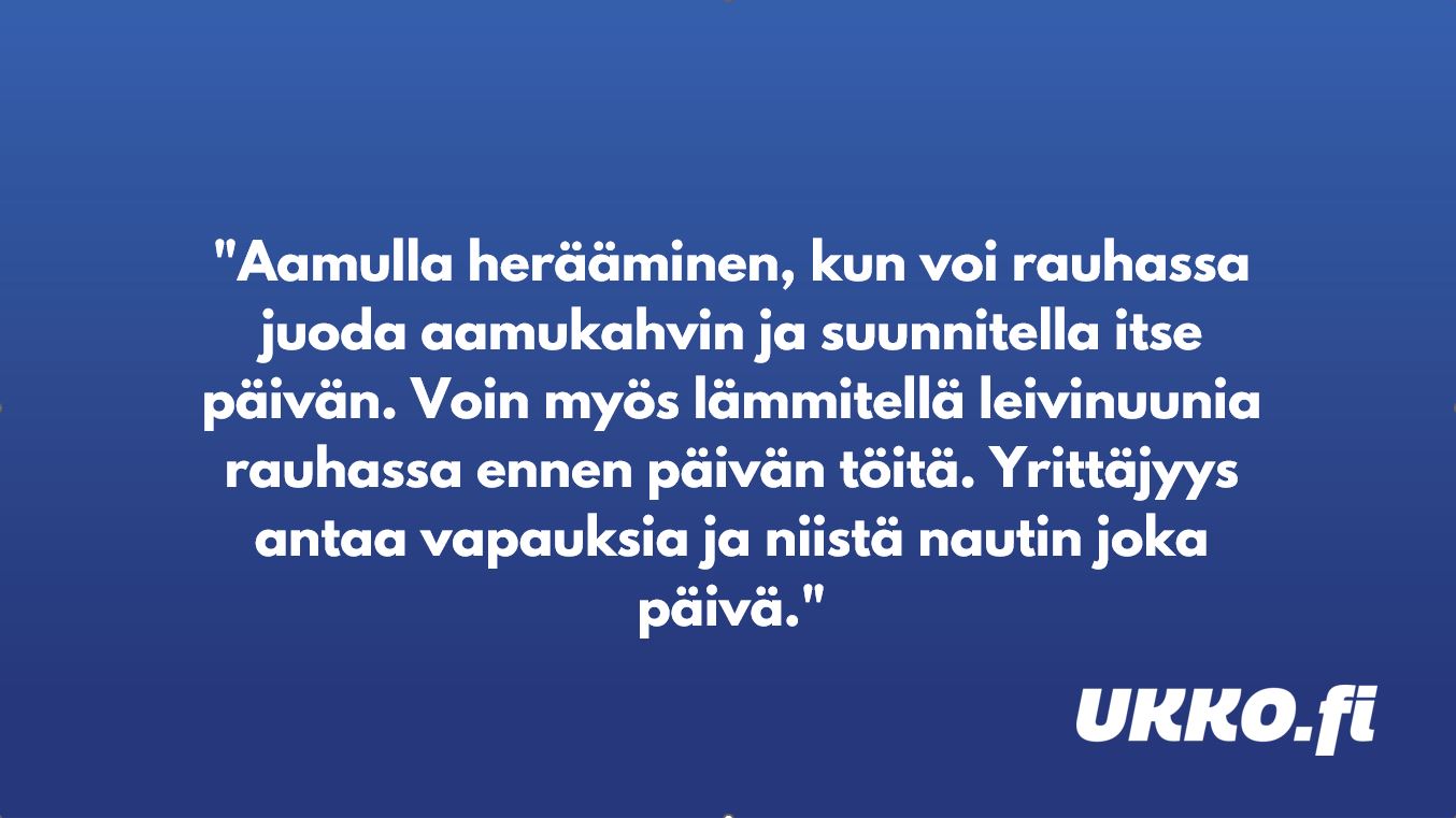“Tampereella pienyrittäjiä löytyy eniten luovilta aloilta – mikä ei sinällään yllätä, kun kaupungin kulttuuriperintö ja yrittäjämyönteinen ilmapiiri otetaan huomioon. Tämä kertoo myös siitä, että yrittäjyyden rooli vaihtelee paikkakunnittain. Tampereella on jo pitkään ymmärretty, että yrittäjyys ei ole vain taloudellinen ratkaisu, vaan myös tapa rakentaa mielekästä ja joustavaa työelämää. Pienyrittäjyyskyselymme avoimet vastaukset vahvistivat tämän – yrittäjät kuvasivat vapautta ja itsenäisyyttä palkitsevimmiksi puoliksi yrittäjyydessä,” kertoo Miko Paassilta, UKKO.fi:n markkinointijohtaja.