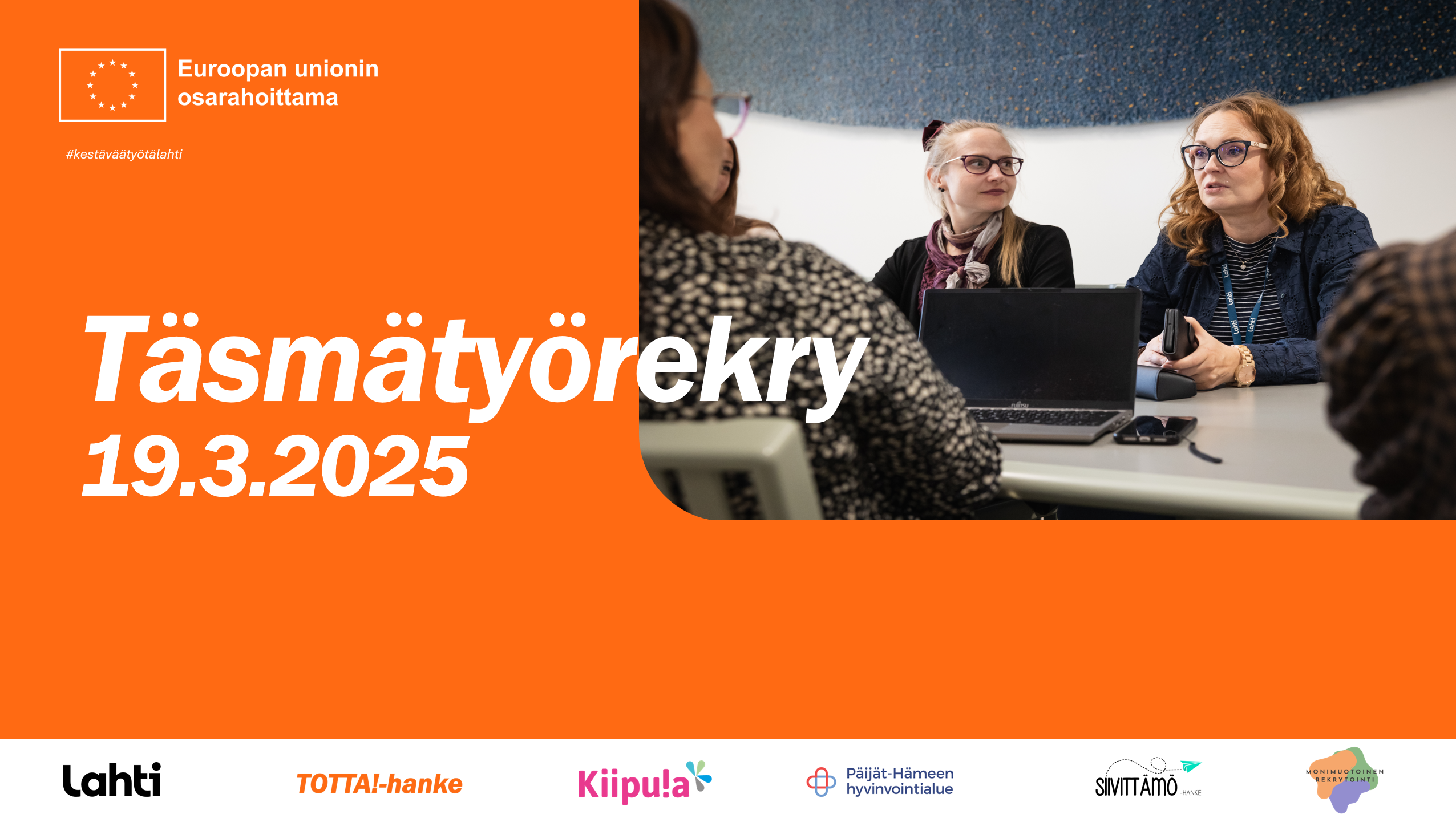 Lahdessa järjestetään ensimmäistä kertaa täsmätyökykyisille suunnattu rekrytointitapahtuma. Vastaavanlainen tapahtuma järjestettiin Hämeenlinnassa syksyllä 2024. Tapahtuma sai erinomaista palautetta sekä yrityksiltä että asiakkailta.