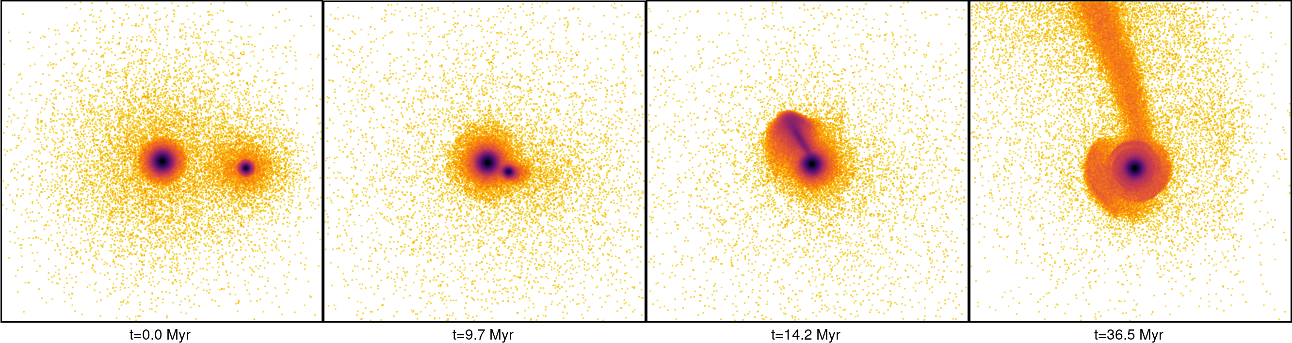 Tulokset vahvistavat, että tähtivirrat syntyvät, kun yhteen sulautuu kaksi tähtijoukkoa, joilla on suuri massaero. Mitä suurempi massasuhde on, sitä pidemmät tähtiroiskeet syntyvät. Prosessi kestää tähtitieteellisesti lyhyen aikaa, alle 100 miljoonaa vuotta. Prosessin piirteet ovat näkyvissä vielä lyhyemmän aikaa, mikä selittää ilmiön havaitsemisen vaikeuden.