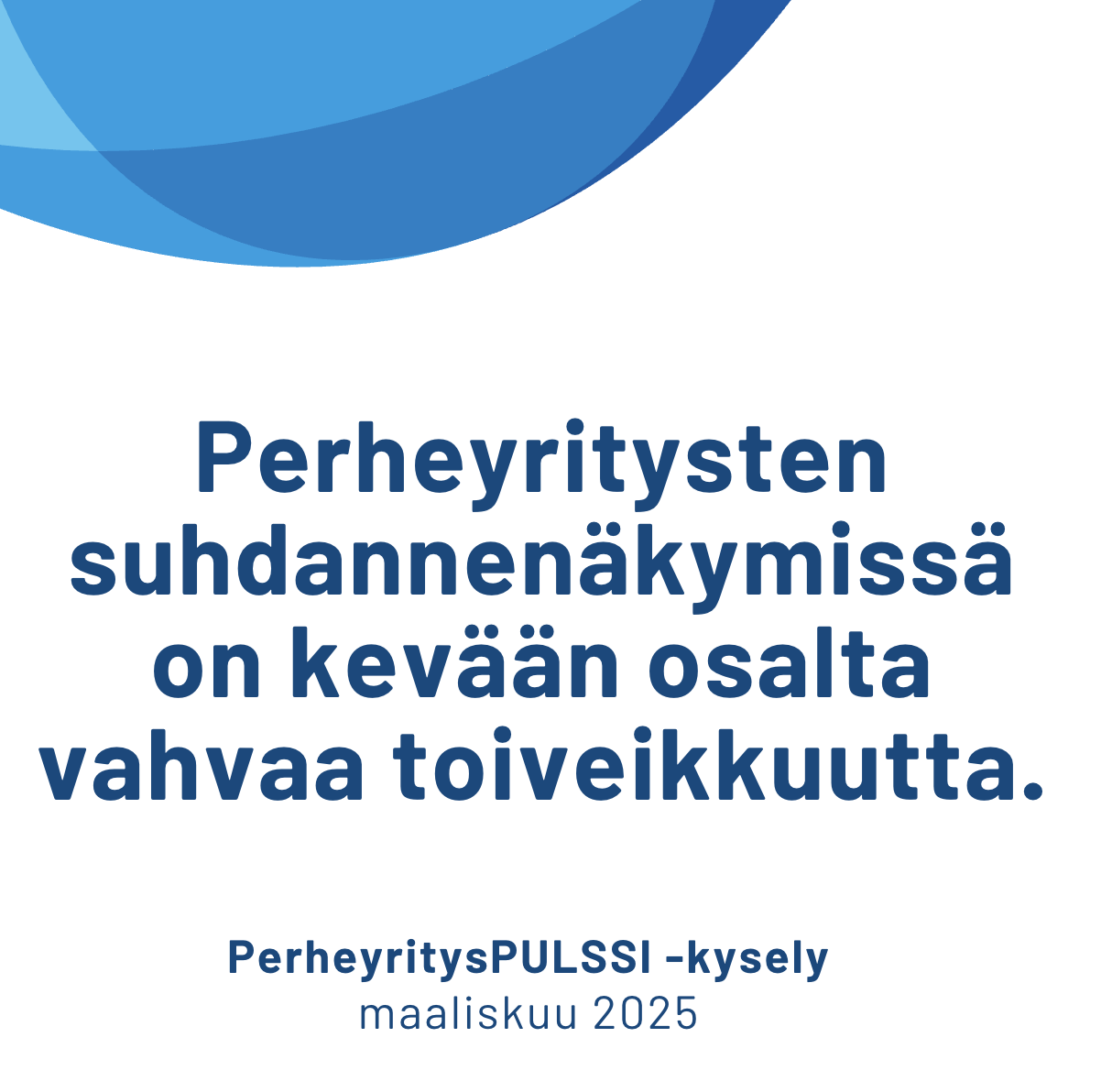 PerheyritysPULSSI on Perheyritysten liiton neljä kertaa vuodessa jäsenilleen tekemä kysely. Suurin osa vastaajista on omistajia yrityksissä, joiden liikevaihto on 10–50 miljoonaa euroa ja jotka työllistävät 10–250 henkeä. Vastaajat ovat tyypillisesti omistajayrittäjiä teollisuuden, palveluiden ja kaupan aloilta. Kyselyyn vastasi 112 perheyritysten edustaja 5. -11.3.2025 välisenä aikana.