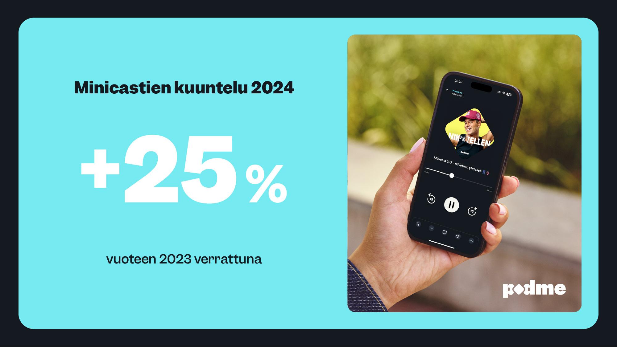 Minicast-sarjat ovat nauttineet suurta suosiota Podmessa heti niiden ilmestymisestä lähtien. Vuonna 2024 minicasteja kuunneltiin 25 prosenttia enemmän kuin niiden lanseerausvuonna 2023. Viime vuonna julkaistut minicastit tavoittivat 21 prosenttia enemmän kuuntelijoita kuin lanseerausvuonna.