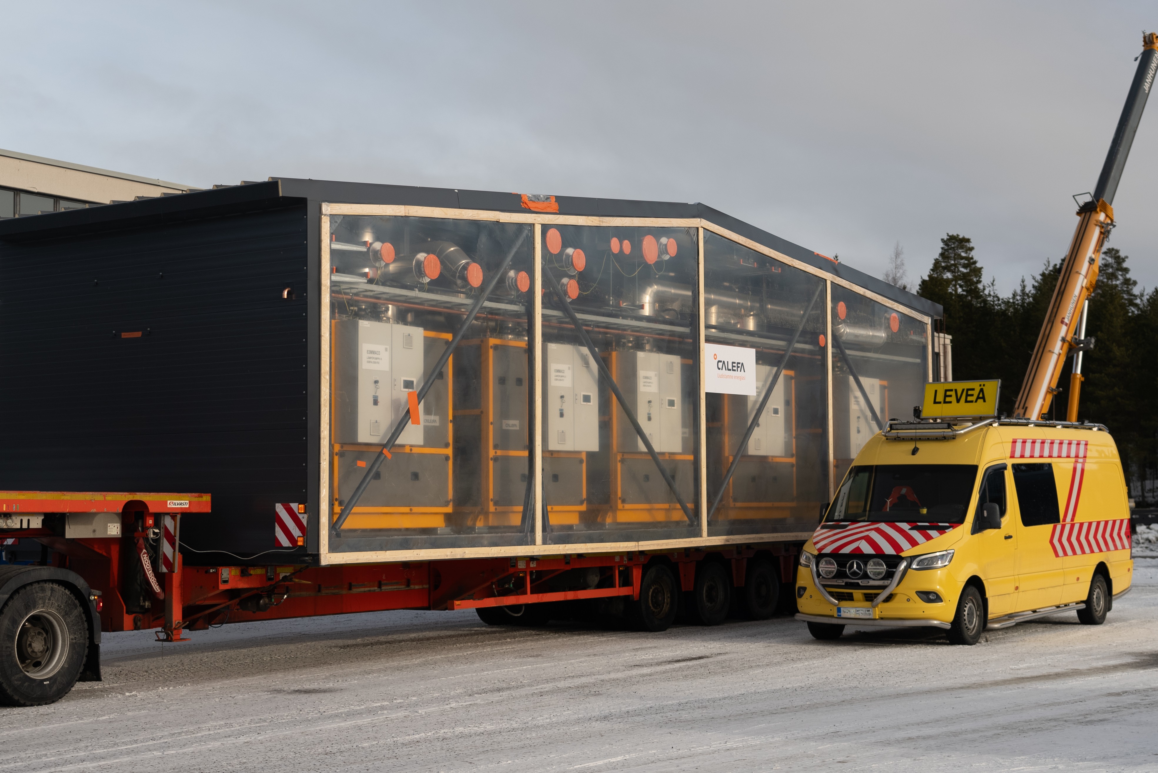 Neve Oy:n Rovaniemen Alakorkalon jätevedenpuhdistamon yhteyteen rakentuva Calefan lämpöpumppulaitos on edennyt työmaavaiheeseen. Kuudesta moduulista koostuva laitos kuljetettiin pohjoiseen kuluneella viikolla.