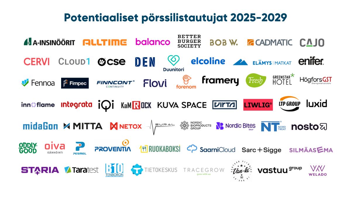 Pääomasijoittajat ry: Potentiaaliset pörssilistautujat 2025-2029.