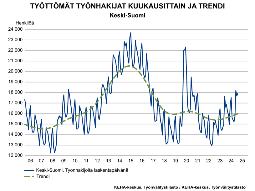 Lisätietoja työmarkkinatilanteesta liitteenä olevassa Keski-Suomen työmarkkinakatsauksessa (helmikuu 2025).
