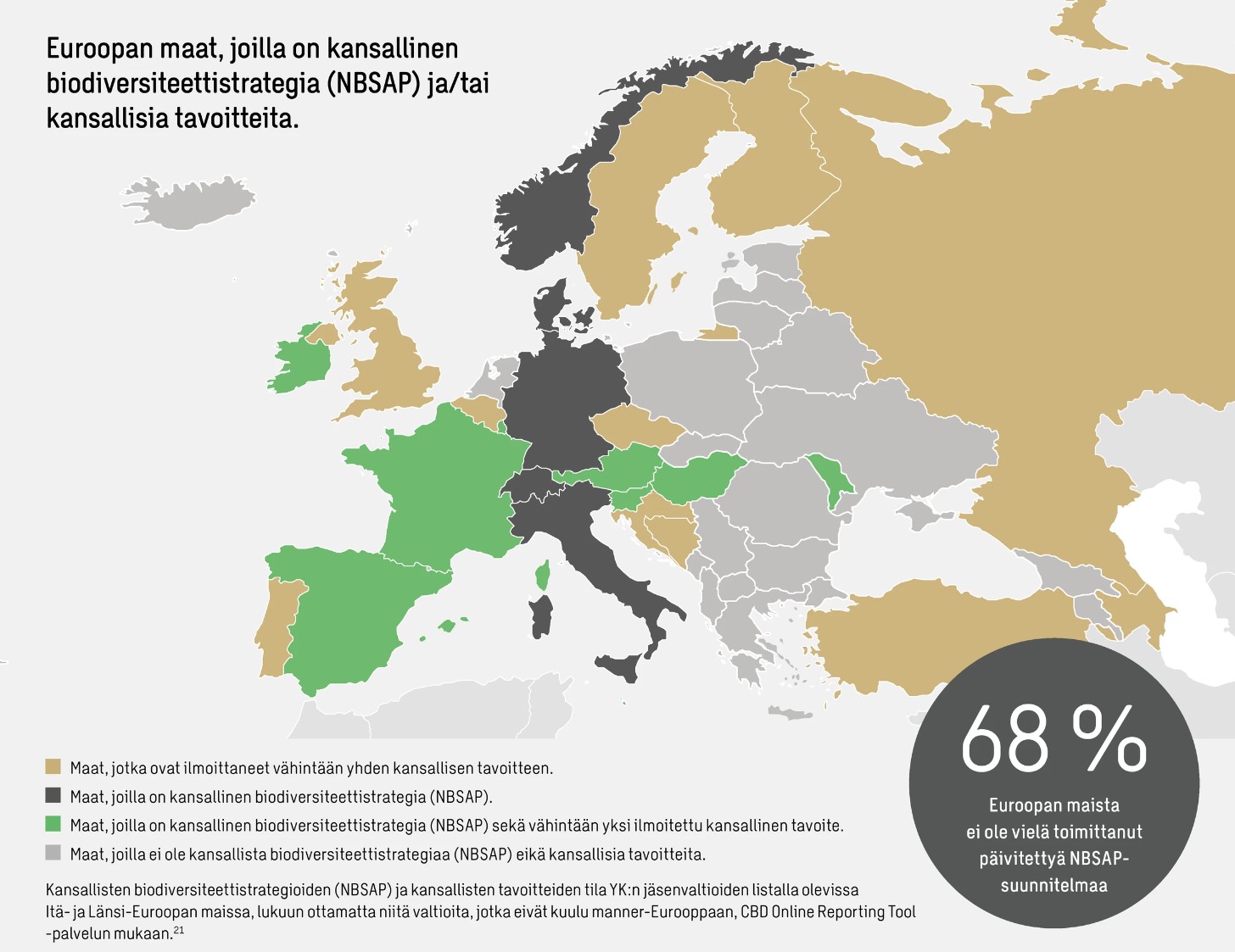 Maailmanlaajuisen biodiversiteettikehyksen tavoitteet ovat kunnianhimoisia – Euroopan maista 68 % ei ole laatinut biodiversiteettistrategiaa