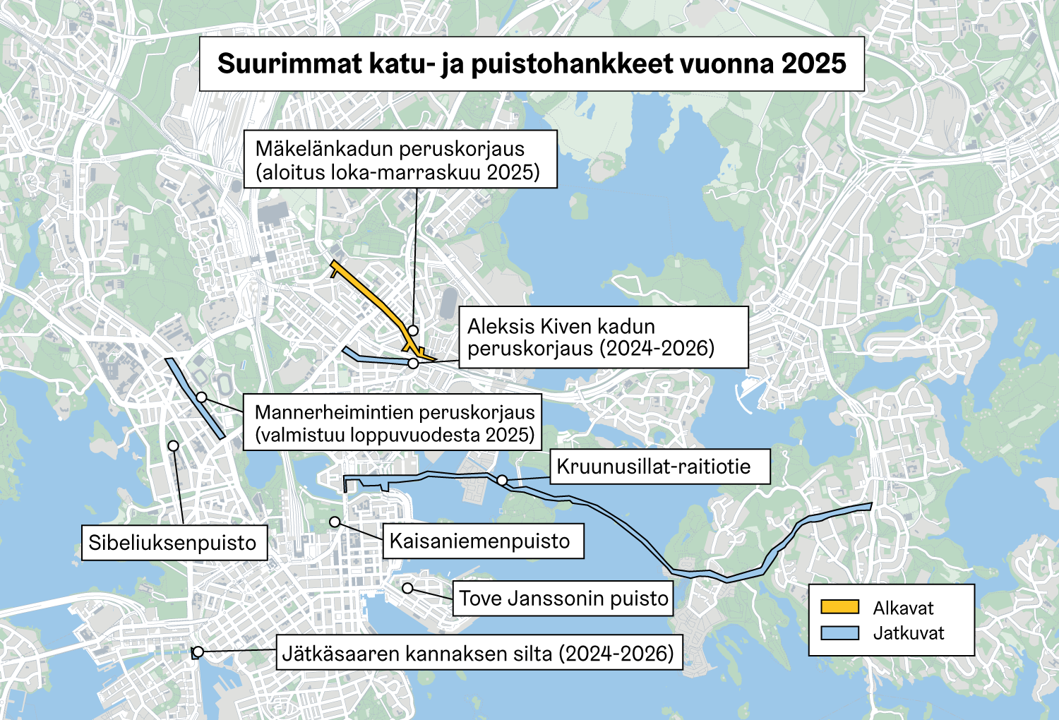 Vuoden 2025 suurimmat katuremontit ovat kantakaupungissa