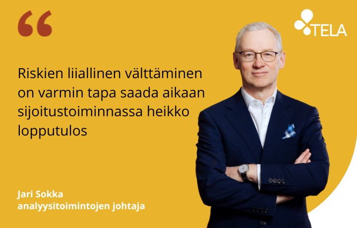 Nimittäin riskien liiallinen välttäminen on varmin tapa saada aikaan sijoitustoiminnassa heikko lopputulos. Jos eläkevarat sijoitettaisiin mahdollisimman vähäriskisesti esimerkiksi pelkkiin valtioiden joukkovelkakirjoihin, joutuisimme nostamaan eläkemaksuja jatkossa huomattavasti. Ja jos tämä ei taas työvoimakustannusten nousun vuoksi olisi mahdollista, vaihtoehtona olisivat massiiviset eläkkeiden leikkaukset.