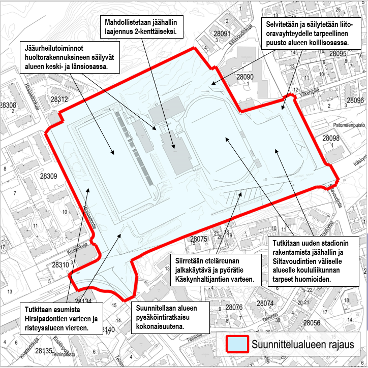 Nyt käynnistyvän kaavoituksen aikana kaupunki laatii tarvittavat suunnitelmat ja selvitykset siitä, minkä kokoluokan stadion ja kuinka paljon asumista suunnittelualueelle on tarkoituksenmukaista sijoittaa. Kaavoituksen aikana myös päätetään, toteutetaanko stadion kaupungin omana hankkeena vai yksityisenä hankkeena kaavaluonnoksen pohjalta järjestettävän kilpailun kautta.