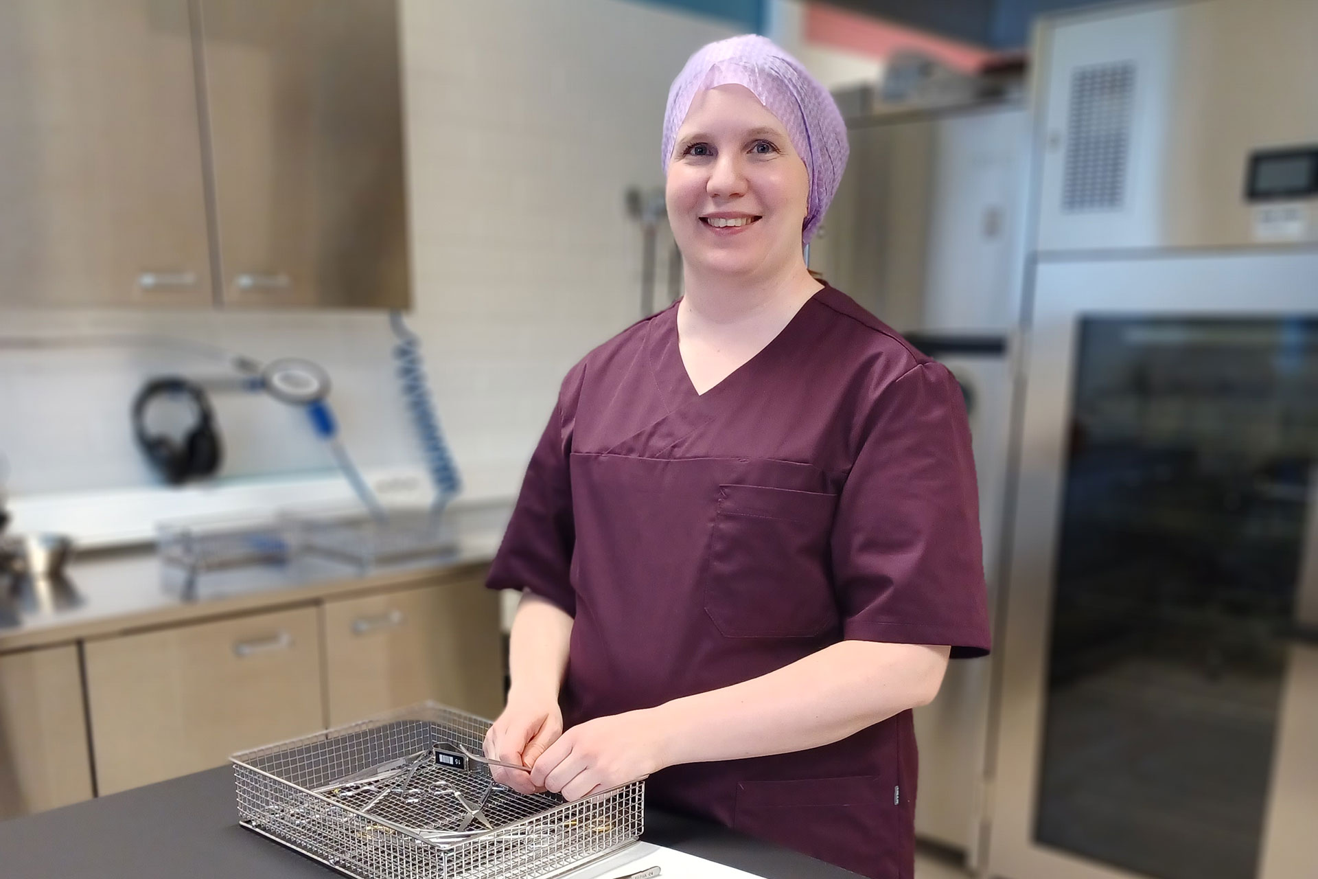 Puhtauspalvelualan kouluttaja Karita Saarinen ei lähtenyt työelämäjaksolle ainoastaan päivittämään osaamistaan, vaan tutustumaan itselleen täysin uuteen alaan: välinehuoltoon. Hän suoritti viikon työelämäjakson Hatanpään sairaalan välinehuoltoyksikössä.