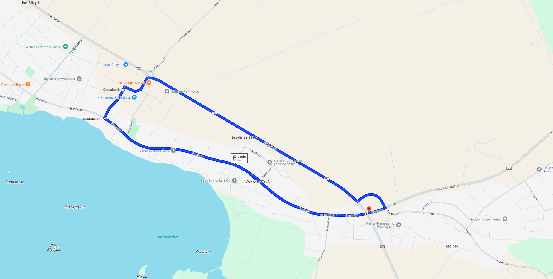 Vähä-Säkylän siltapaikka kartalla (maps.google.fi)