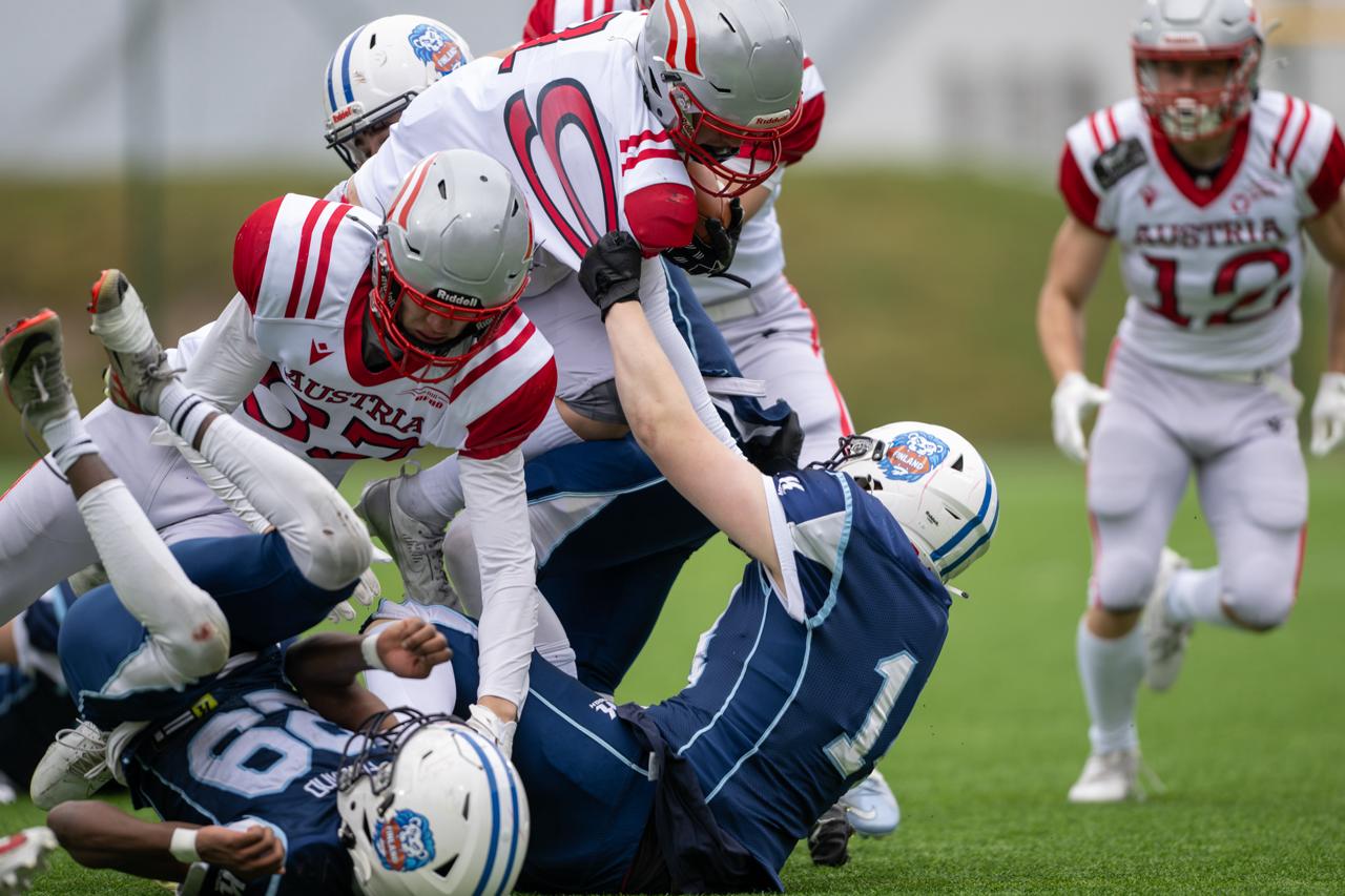 Suomen U19-jenkkifutisjoukkue kärsi 14–41 (14–17) -tappion Itävallalle lauantaina Vantaan Myyrmäessä pelatussa ikäluokan EM-mitalipelissä. EM-mitalit ratkaistaan kevään 2025 aikana Suomen, Itävallan ja Ruotsin keskinäisten otteluiden perusteella.