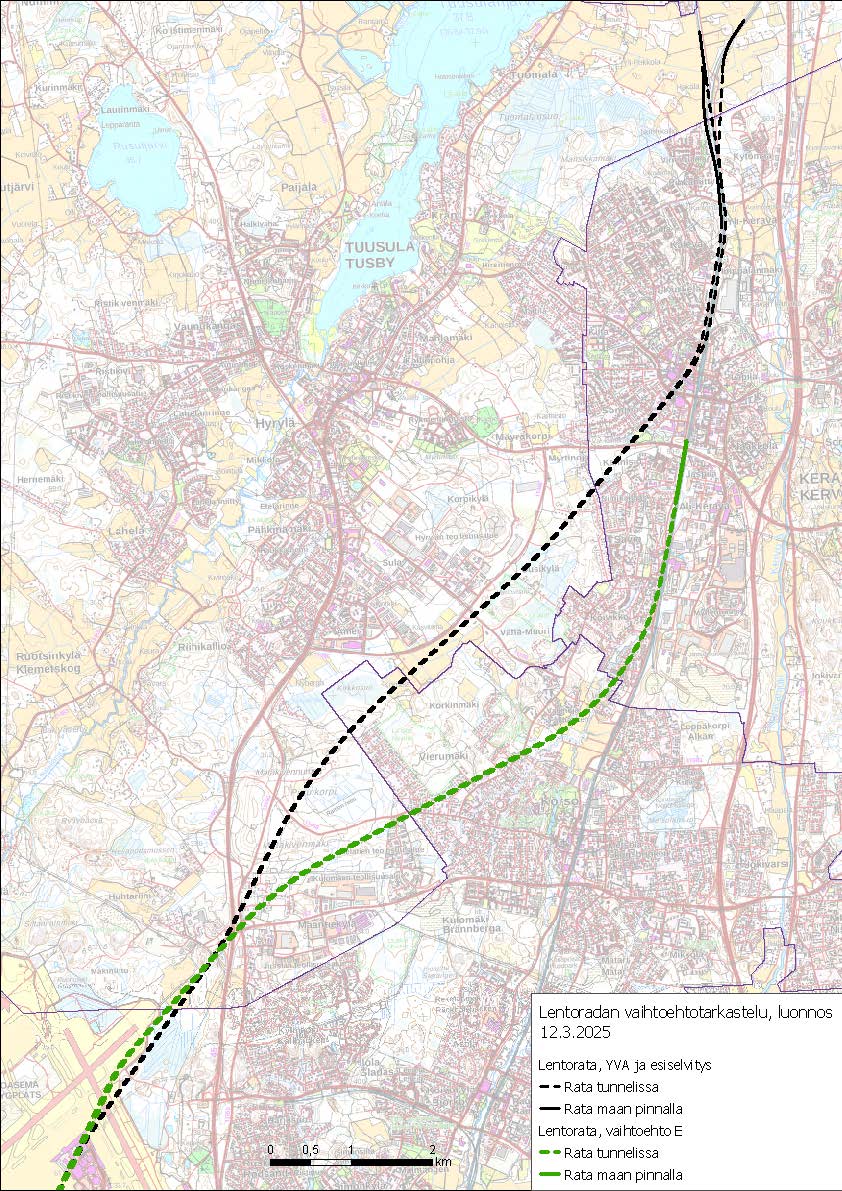 ”Kun kalliotunneli lyhenee, vähenee myös tunneliosuuden rakentamisessa syntyvän louheen määrä. Lisäksi uusi vaihtoehto mahdollistaa yhteyden Keravan asemalta Lentoradalle”, Koski jatkaa.