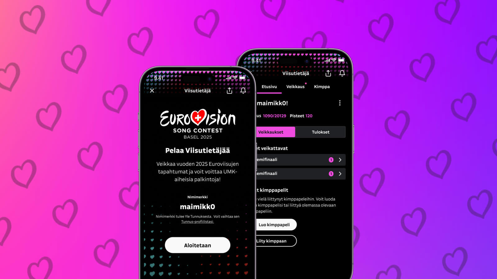 Viisufinaalin tunnelmaan pääsee ESC25 Etkot -lähetyksessä tai finaalia edeltävänä iltana näytettävässä Suuri euroviisujuhla 2024 -konsertissa.