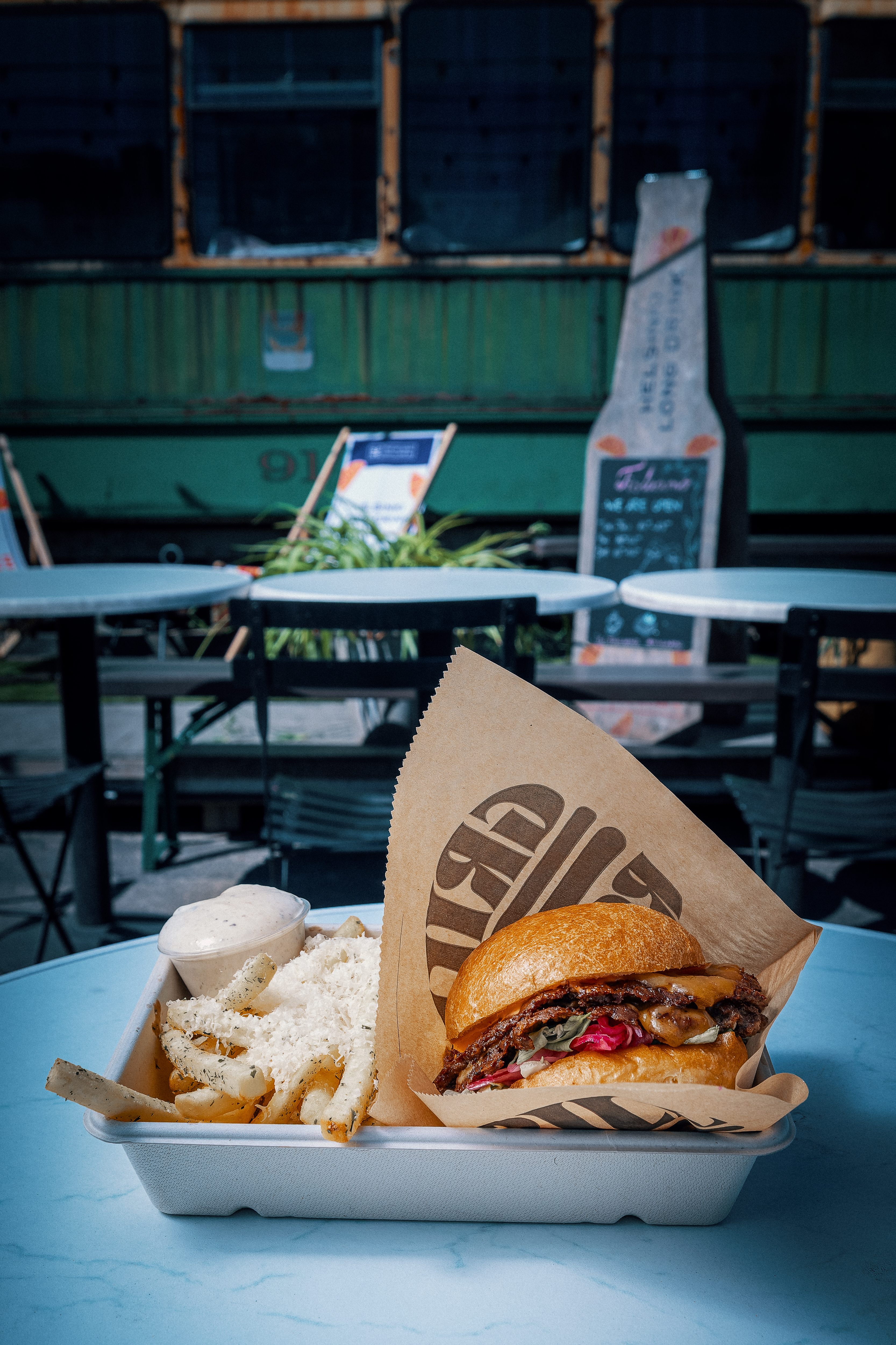 The Helsinki Distilling Company on kutsunut Grill Roomin kesäksi ravintolavierailulle, joten Hankasalmen palkittuja burgereita saa myös Tislaamo Distillery Bar:in terassilta vapusta syksyyn.
