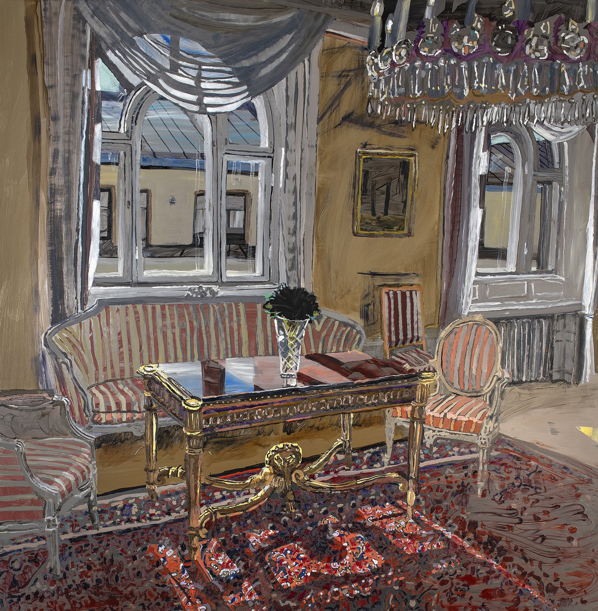 Paikan henki ei synny pelkästään rakennuksista. Kuten Adamssonin maalauksissa, myös paikoissa tunnelma muodostuu monikerroksisesta yhdistelmästä värejä, valoa ja pimeyttä, ihmisiä sekä elettyä elämää. Historian kerrokset ovat todellisia ja luovat oman äänensä esimerkiksi kaupunkitilaan. Maalauksenkin maailman voi aistia: katsoja voi muistaa, miltä tuntuu kevään paljas valo tutussa jokirannassa tai keskikesän paksu helle juuri ennen sadetta. Veturitallin näyttely on teemallinen kokonaisuus, jossa katsoja kuljetetaan eri tunnelmia kantavien aikakausien lävitse. Teoksissa palvelijattaret tarjoilevat iltapäiväteetä sievissä interiööreissä ja porvariskoti on kaunis keidas arvokkaine itämaisine mattoineen. Erityisesti naisten roolit ja työtehtävät muuttuvat vuosikymmenten edetessä. Eri paikkoihin astumisen kautta on mahdollista käsitellä myös traagisia aiheita, mukana teoksissa on ihmisyyden koko kirjo.