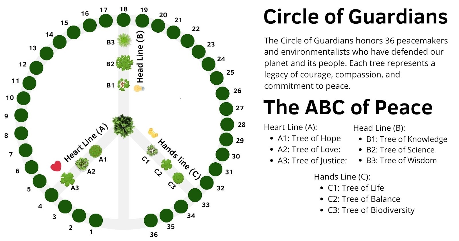 Lataa opaskirjamme ja tutustu missioomme ja siihen, kuinka voit osallistua. Tästä löydät ohjeet puiden rekisteröintiin. Käytä suomenkielistä kutsuvideotamme, joka on käännetty 50 kielelle. Tässä myös video laulustamme Peace is our way.