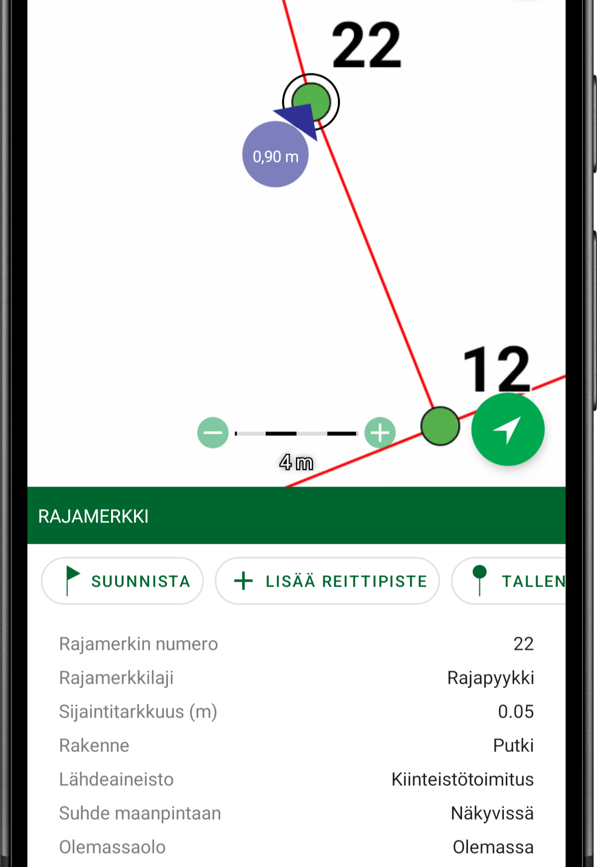 Suosittu Karttaselain-maastokarttasovellus tuo nyt tähän käyttöön täsmätyökalun: uuden karttatason, joka sisältää vektorimuotoiset, parhaimmillaan senttimetritarkkuuteen yltävät kartat kiinteistöjen rajamerkeistä ja kiinteistörajoista koko Suomen alueelta. Samassa yhteydessä sovellukseen on tuotu mukaan helppokäyttöiset toiminnot rajamerkille suunnistamiseen ja rajalinjalle navigointiin. Kartta perustuu Maanmittauslaitoksen jatkuvasti ajantasaisimpiin kiinteistötietoihin.