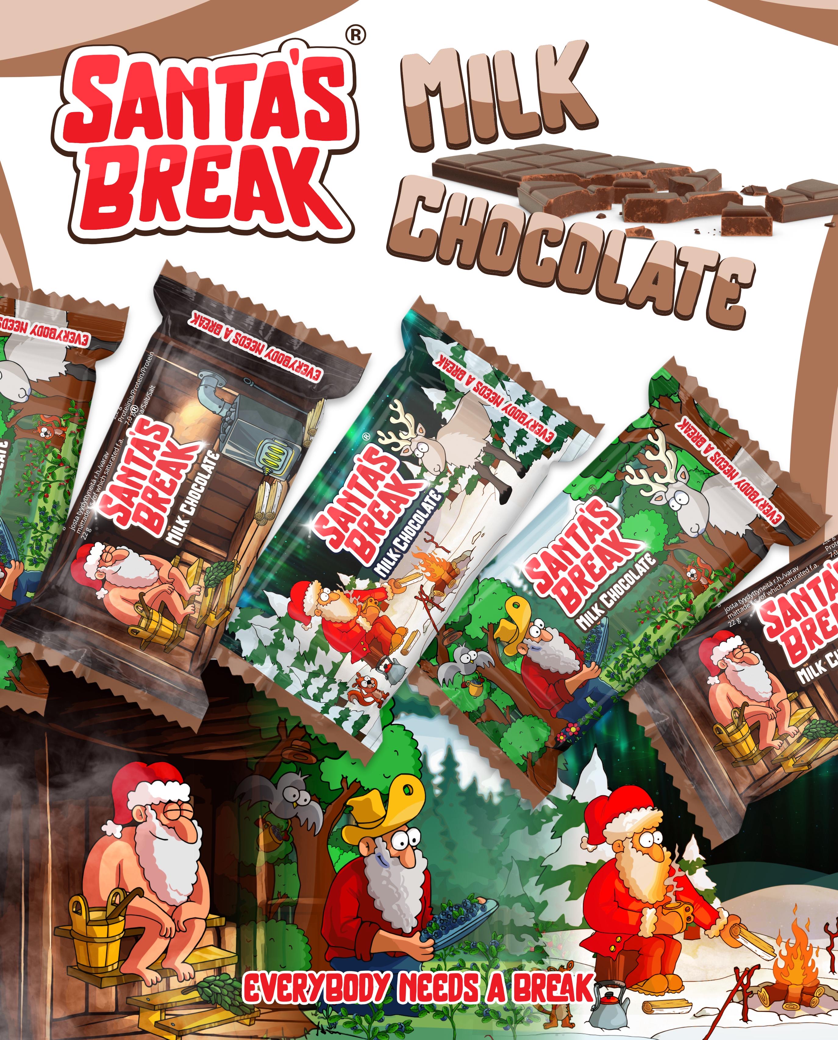 Santa’s Break on tarina siitä mitä joulupukki tekee, kun joulupukki ei tee töitä. Haluamme muistuttaa levon tärkeydestä, luonnon kauneudesta, pohjoisesta elämäntavasta sekä joulun taiasta. Santa’s Break:n maailma on kuvitettu kertomus maailman tunnetuimmasta hahmosta. Brändin ydinajatus kiteytyy sloganiin: ”Everybody needs a break” – jokainen tarvitsee hetken hengähdystauon.