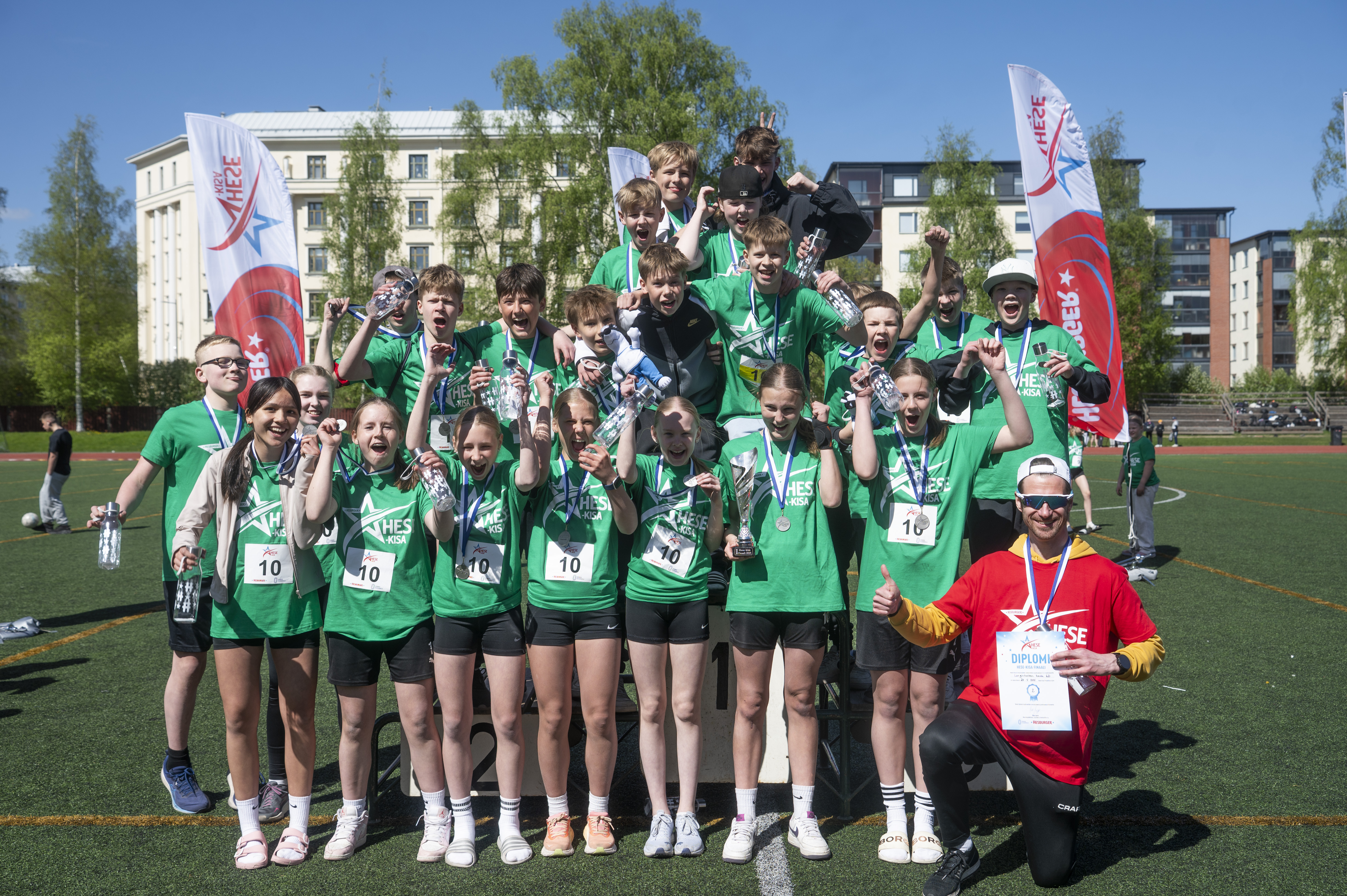 Tampereella Pyynikin stadionilla järjestettiin eilen (20.5.25) Hesburgerin ja Suomen Urheiluliiton (SUL) Hese-kisojen finaali, jossa koululaiset kilpailivat sukkula- ja kierrosviestissä, pituushypyssä ja junnukeihäässä.