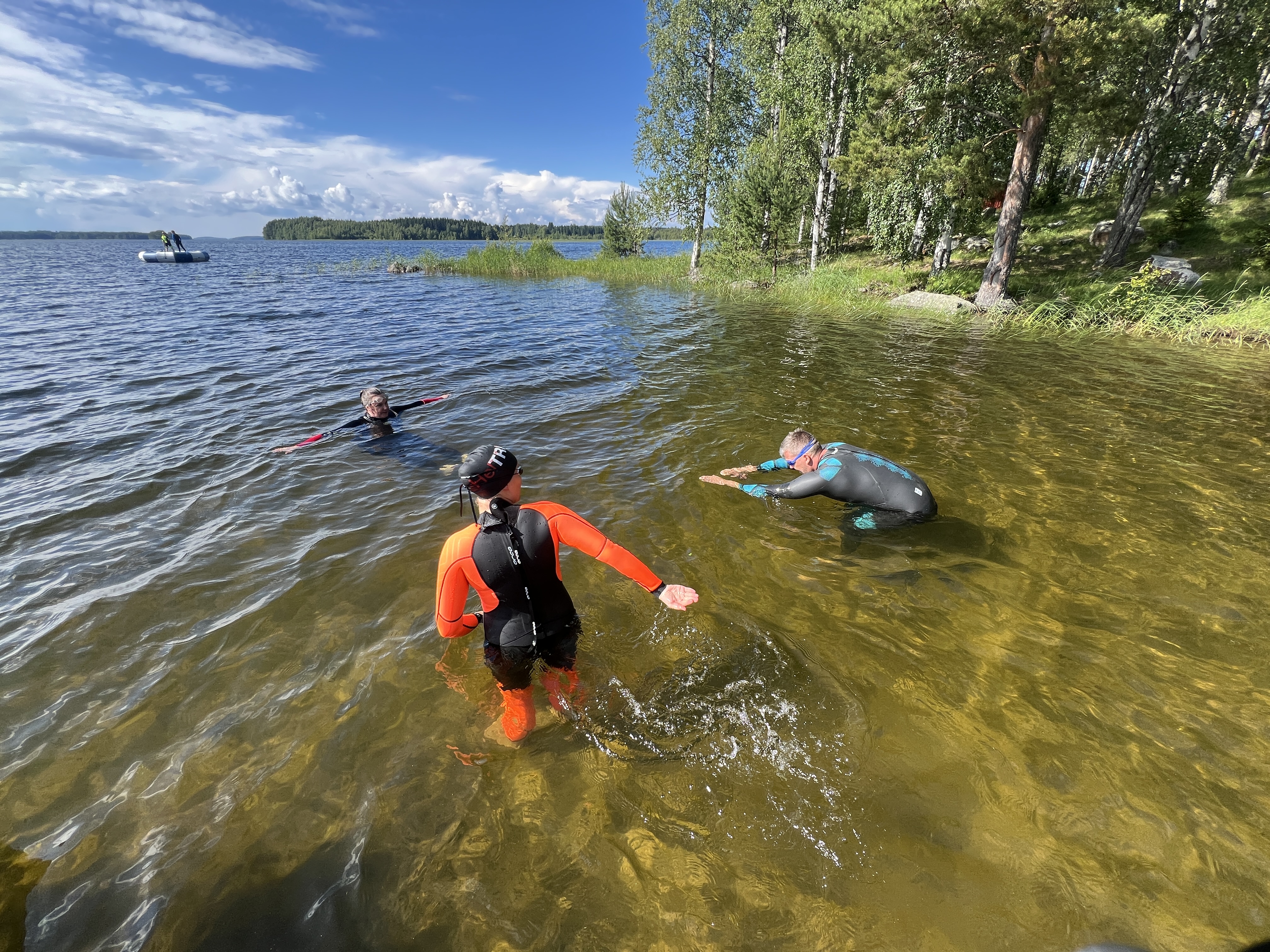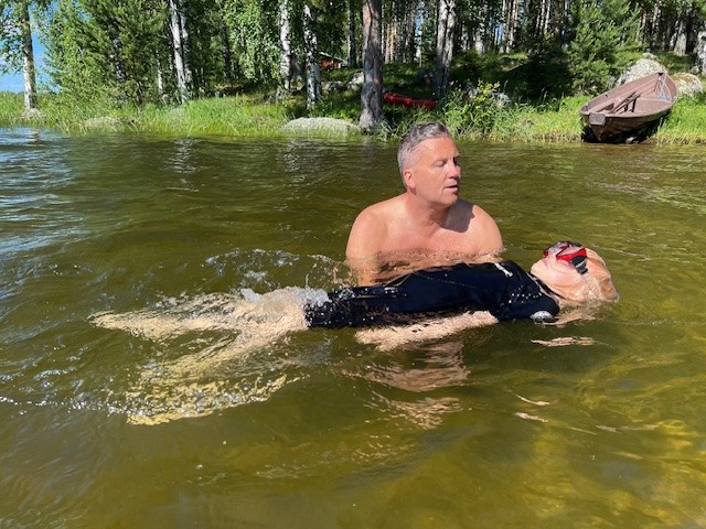 Kuntien ja uimaseurojen lisäksi uimaopetusta järjestävä yksityiset toimijat. Maailmanmestari Jani Sievisen uimakoulu/-leiri lapsille ja aikuisille järjestetään toista kertaa 22.-24. kesäkuuta Suomen kirkkaimpiin järviin lukeutuvan Puruveden rannalla Savonlinnan Punkaharjulla. Kuva: Heikki Hamunen