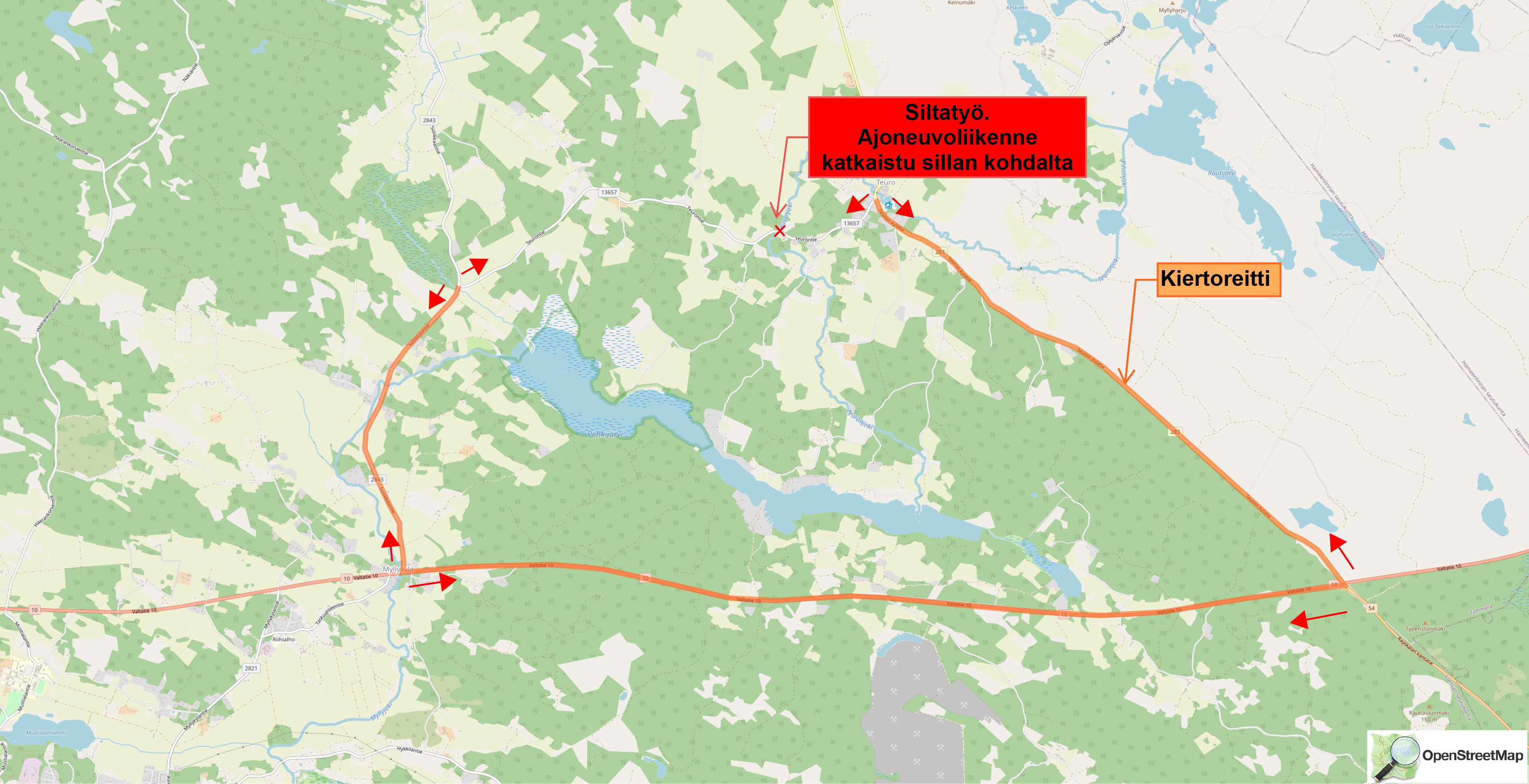 Nykyinen silta puretaan kokonaisuudessaan, ja tilalle rakennetaan uusi teräsbetoninen silta. Rakentamisen ajaksi ajoneuvoliikenne keskeytetään sillan kohdalta uuden sillan rakentamisen ajaksi. Ajoneuvoliikenne ohjataan työnaikaiselle kiertoreitille, joka on Teuron kylätie (Mt 283) – valtatie 10 (Vt 10) – Susikkaantie (Mt 2843). Jalankulku- ja pyöräliikenteelle rakennetaan väliaikainen ylityspaikka työmaan läheisyyteen. Liikenne palautetaan Teurontielle (Mt 13657) koulujen alkuun mennessä 7.8.2025.