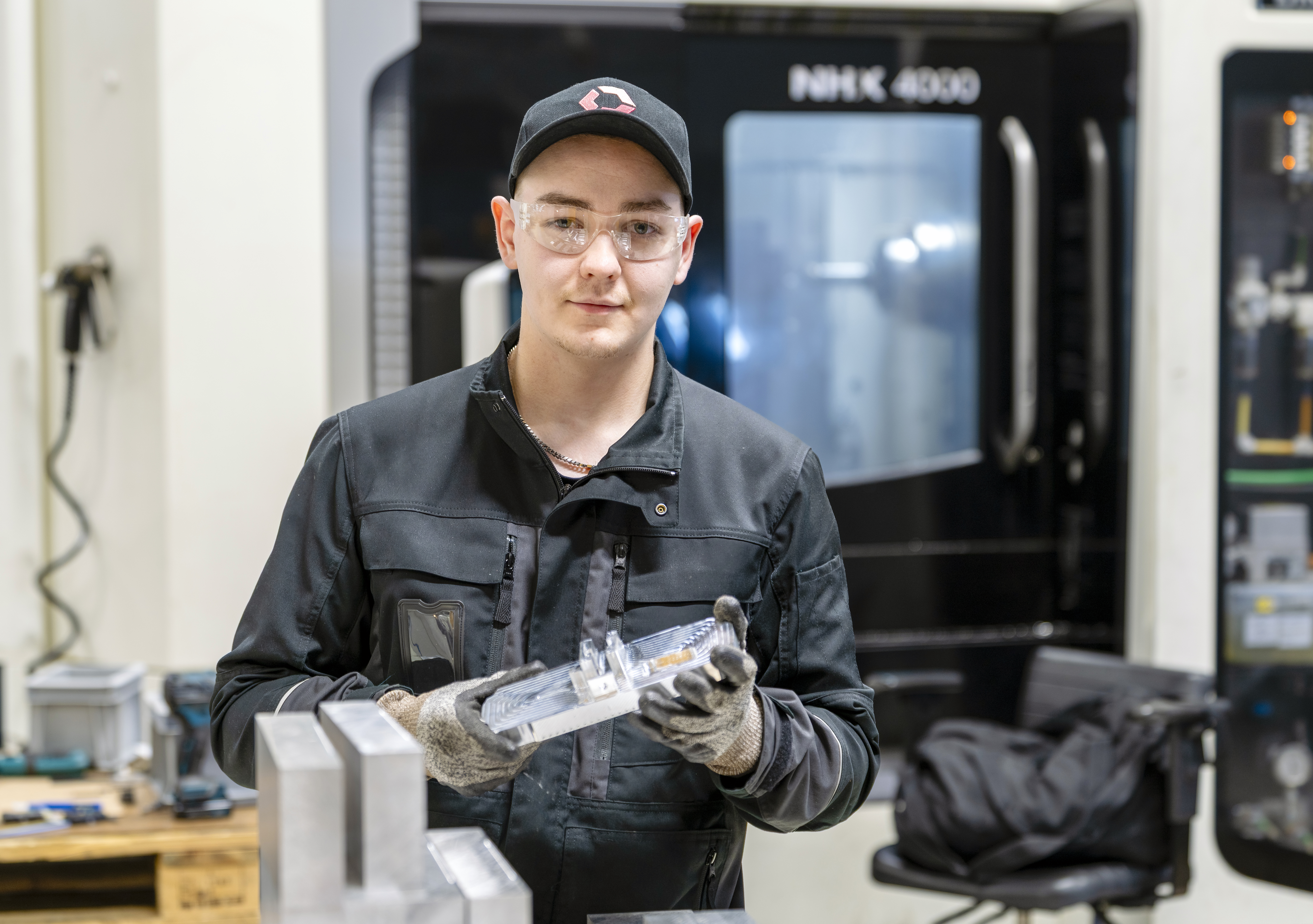 Hyvä koneistaja on tarkka ja huolellinen. Näin sanoo OSAOssa ripeästi ammatin opiskellut Eemil Palosaari. Halu tehdä konkreettista työtä ja nähdä oman osaamisen jälki sai valitsemaan kone- ja tuotantotekniikan. ”Kävi hieman tuurikin. Hoidin asiat hyvin ja työllistyin heti”, hän sanoo.