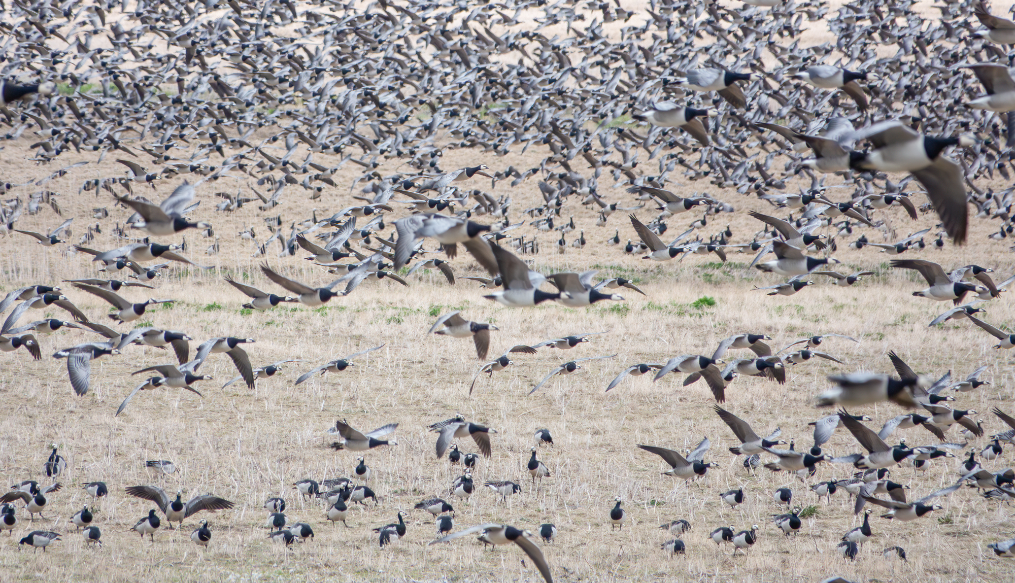 Valkoposkihanhien kevätmuutto on lähes kokonaan ohi. Pohjois-Karjalan parhailla paikoilla oleilee vielä muutaman sadan yksilön parvia, mutta pääjoukot ovat ohittaneet Suomen matkalla arktisille pesimäalueilleen.