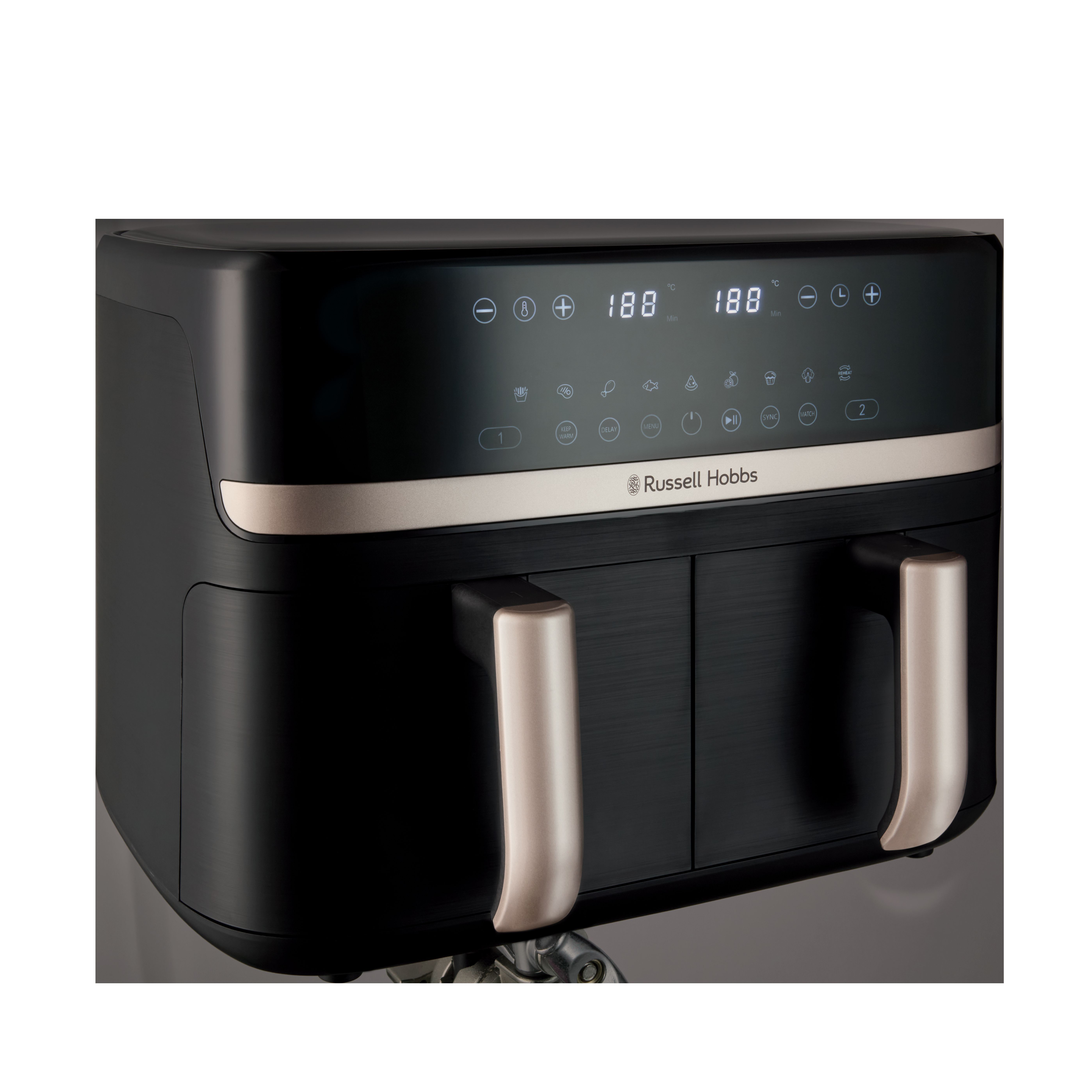 Russell Hobbs Satisfry Dual Basket Airfryer valmistaa koko illallisen yhdessä hujauksessa