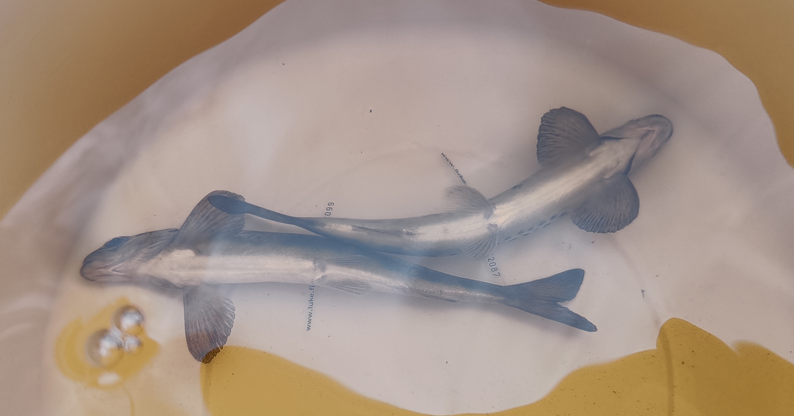 Kuva 2: Kaksi Haapakoskella kiinnisaatua streamer-merkittyä lohismolttia